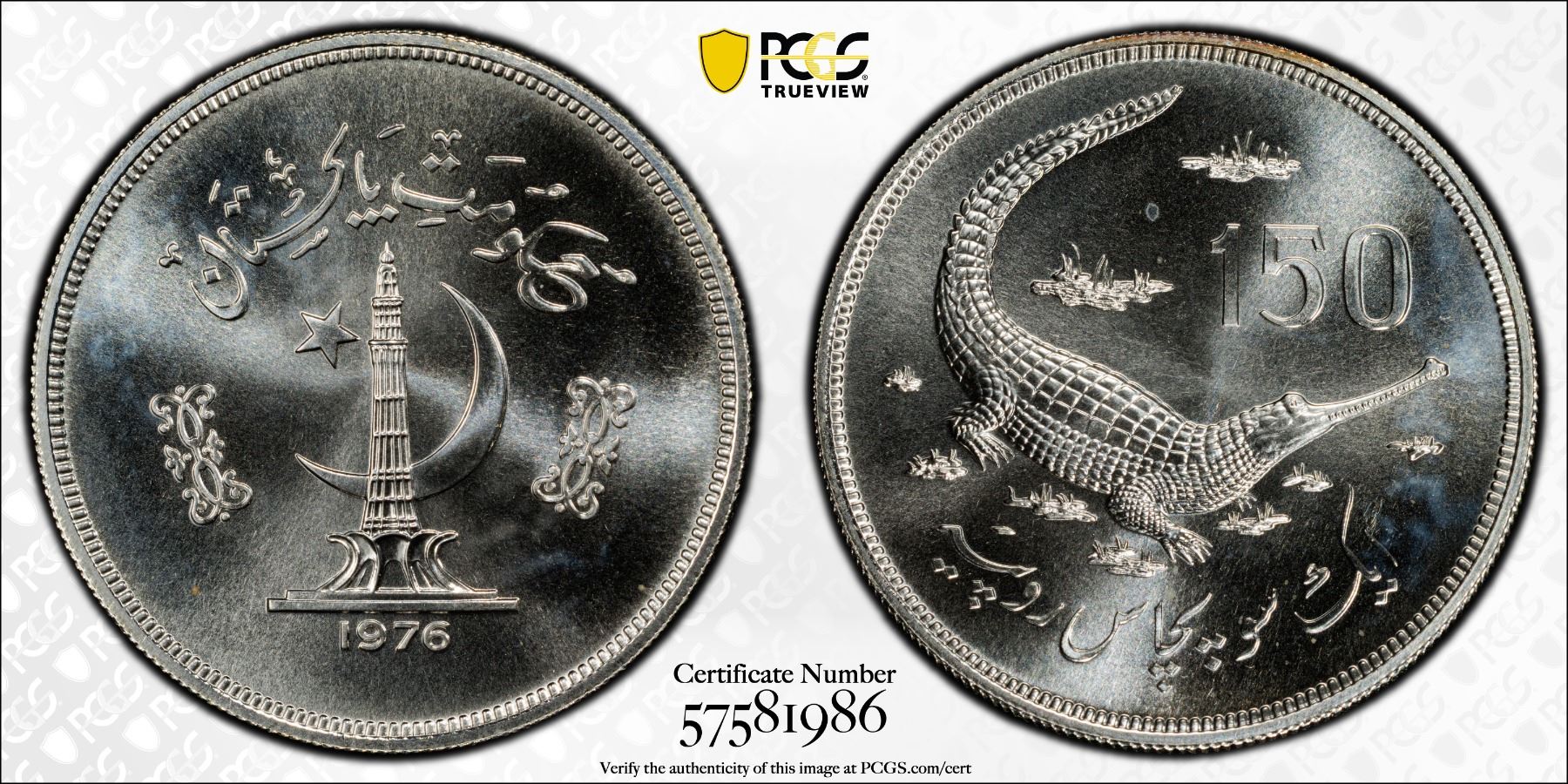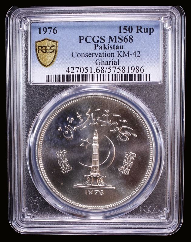 PAKISTAN: Islamic Republic, AR 150 rupees, 1976, KM-42, Conservation Series - Gavial Crocodile, PCGS graded MS68.