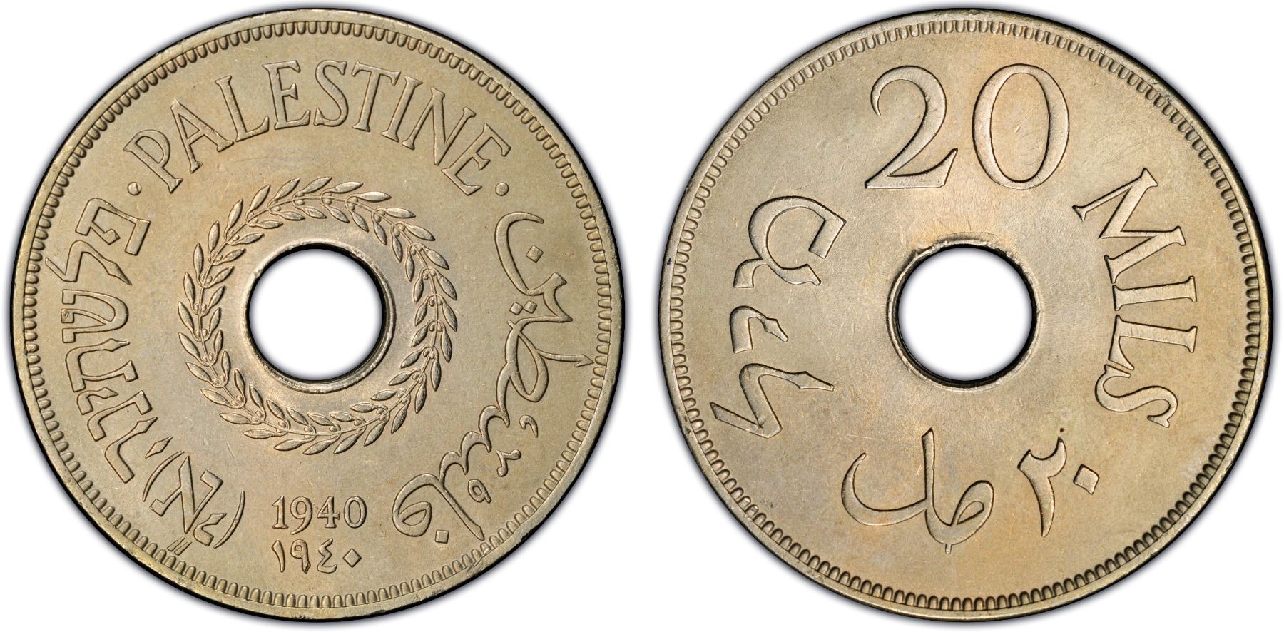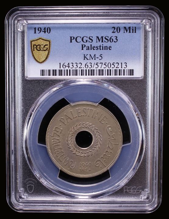 PALESTINE: British Mandate, 20 mils, 1940, PCGS MS63
