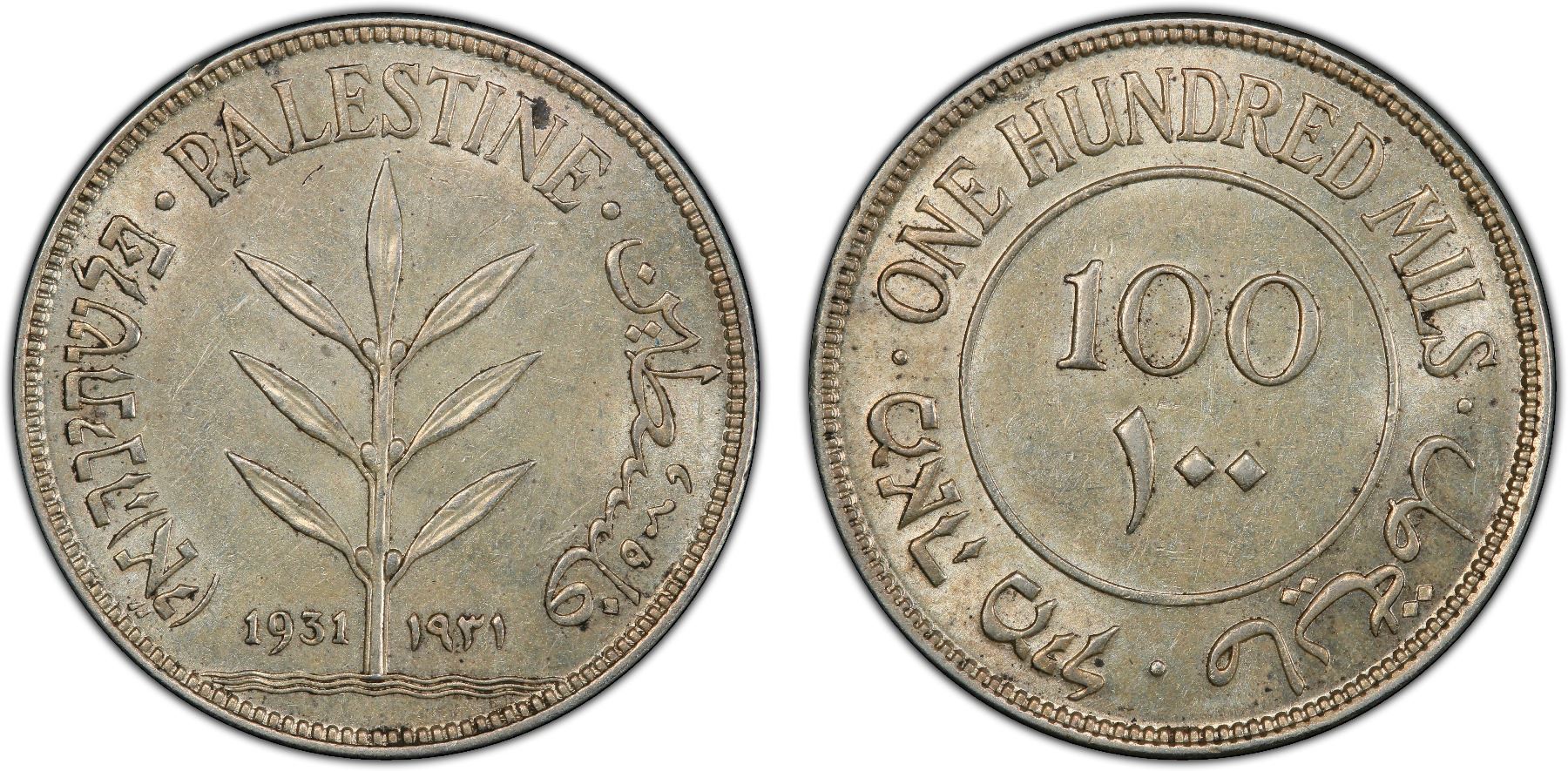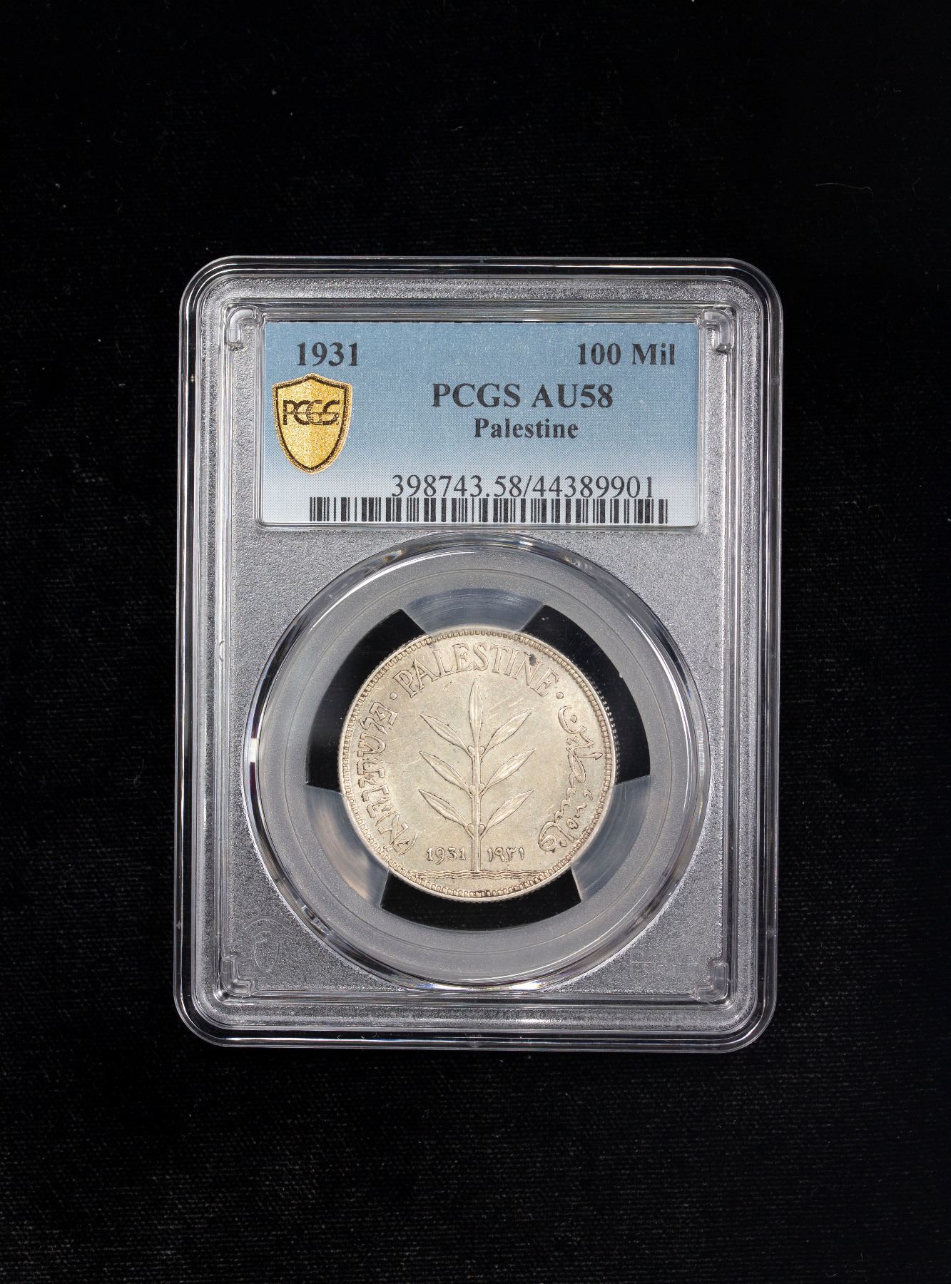PALESTINE: British Mandate, AR 100 mils, 1931, KM-7, an attractive nearly mint state example, PCGS graded AU58.