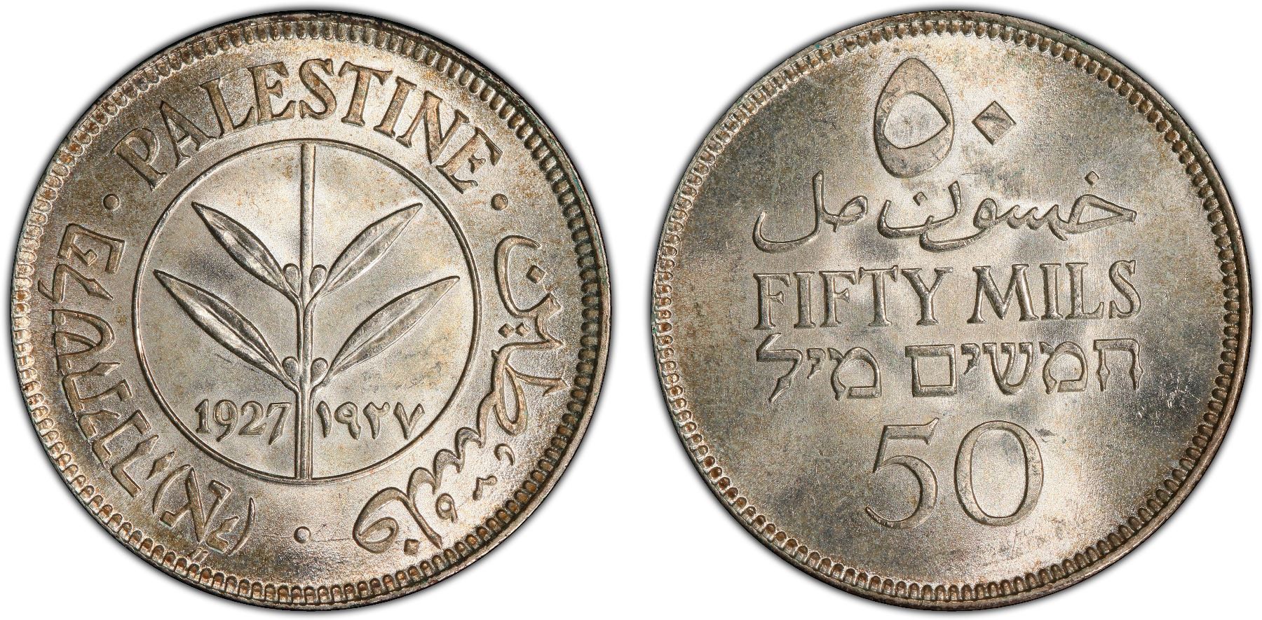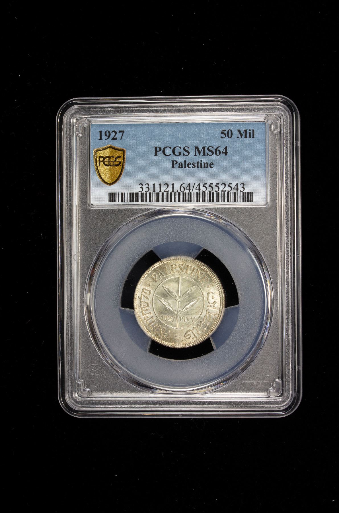 PALESTINE: British Mandate, AR 50 mils, 1927, KM-6, a wonderful quality example! PCGS graded MS64.