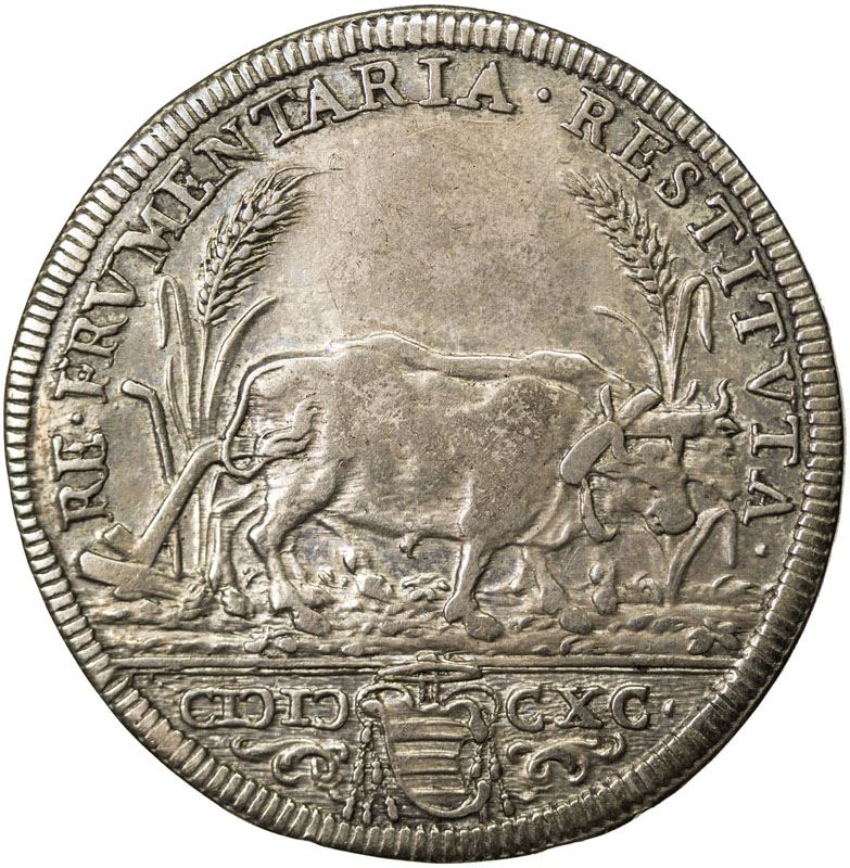 PAPAL STATES: Alexander VIII, 1689-1691, AR testone (9.00g), 1690, KM-524, two oxen plowing right, attractively toned, choice VF.