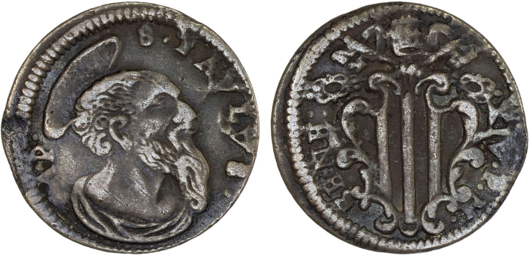 PAPAL STATES: Benedict XIV, 1740-1758, AE quattrino, ND, Berman-1793vR, somewhat crude, arms with legend BENE: .XIV.P.M. around // head of St. Paul right with S.PAVLVS. AP. around, VF.