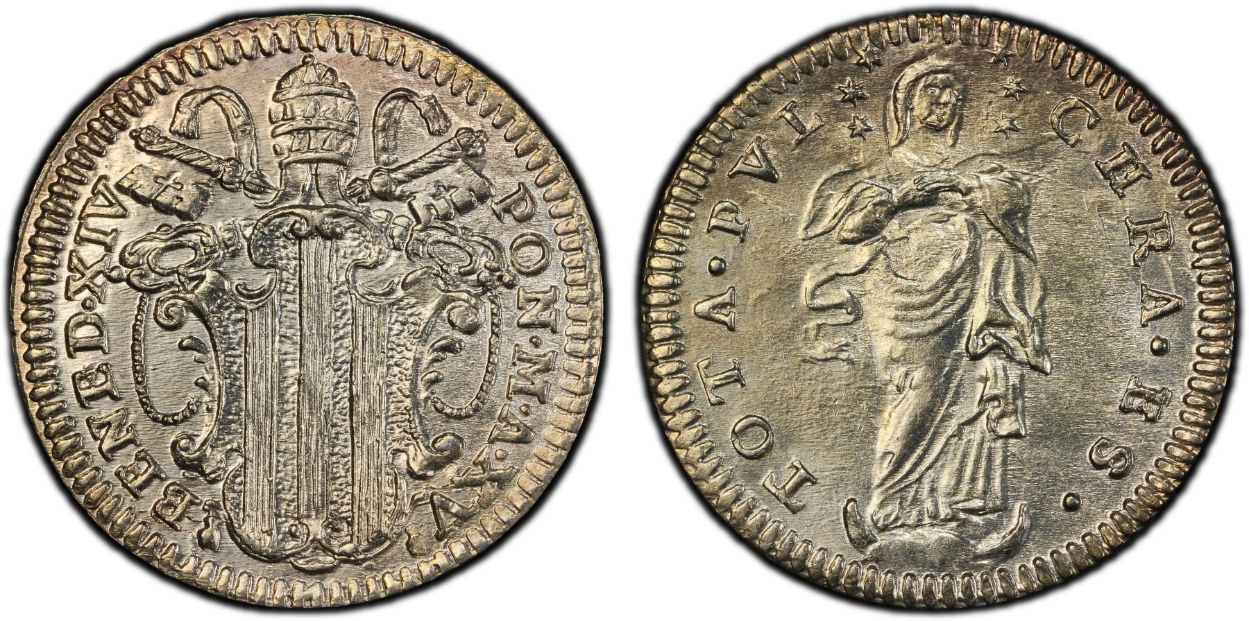 PAPAL STATES: Benedict XIV, 1740-1758, AR grosso, year XV (1754), PCGS MS64