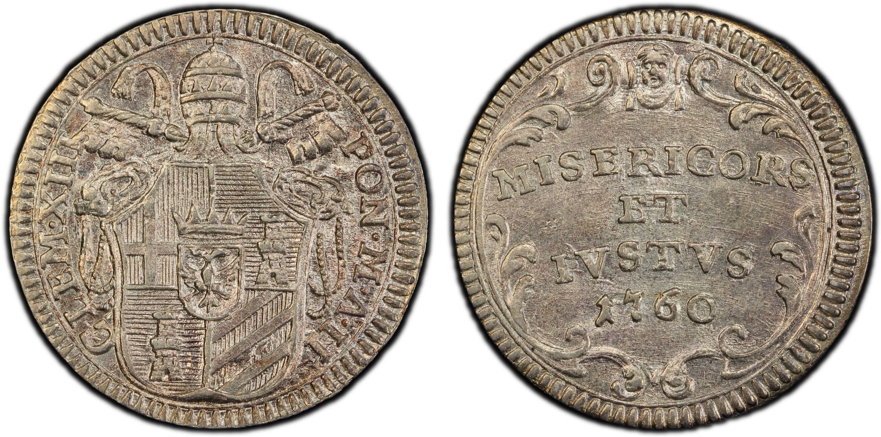 PAPAL STATES: Clement XIII, 1758-1769, AR grosso, 1760 year II, PCGS MS64