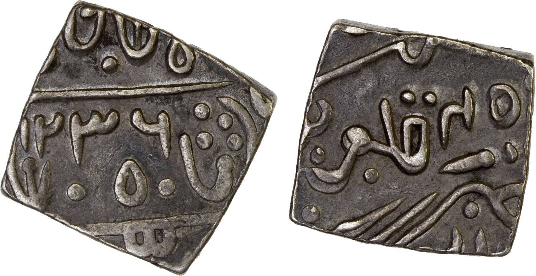PARTABGARH: Dulep Singh, 1825-1864, AR square nazarana rupee (10.92g), Deogarh, AH1236 year 45 (froz