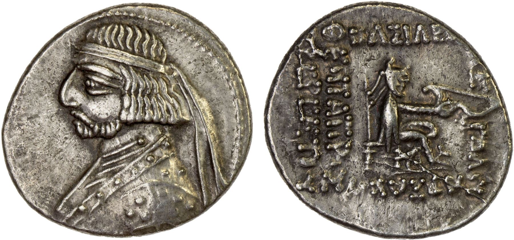 PARTHIAN KINGDOM: Orodes I, ca. 90-77 BC, AR drachm (4.00g), Shore-131 ff, bare-headed, wearing diadem, short beard, 5-line legend on reverse; lovely portrait, XF.