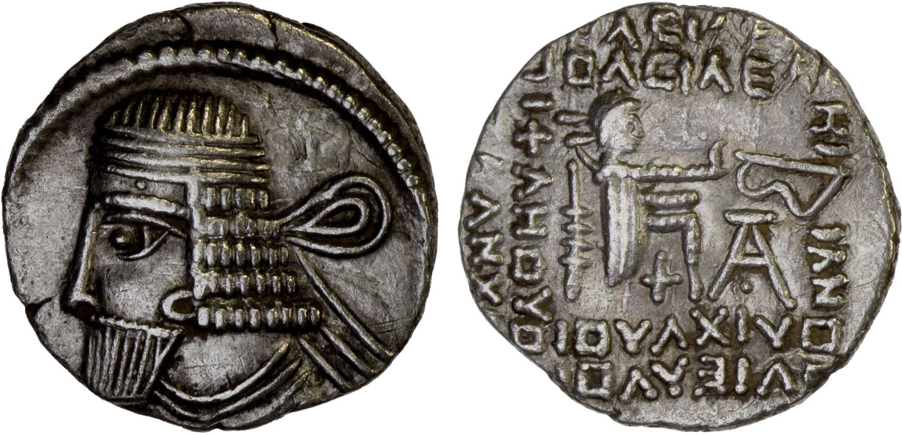 PARTHIAN KINGDOM: Vologases I, ca. 51-78 AD, AR drachm (3.52g), Ekbatana, Choice VF