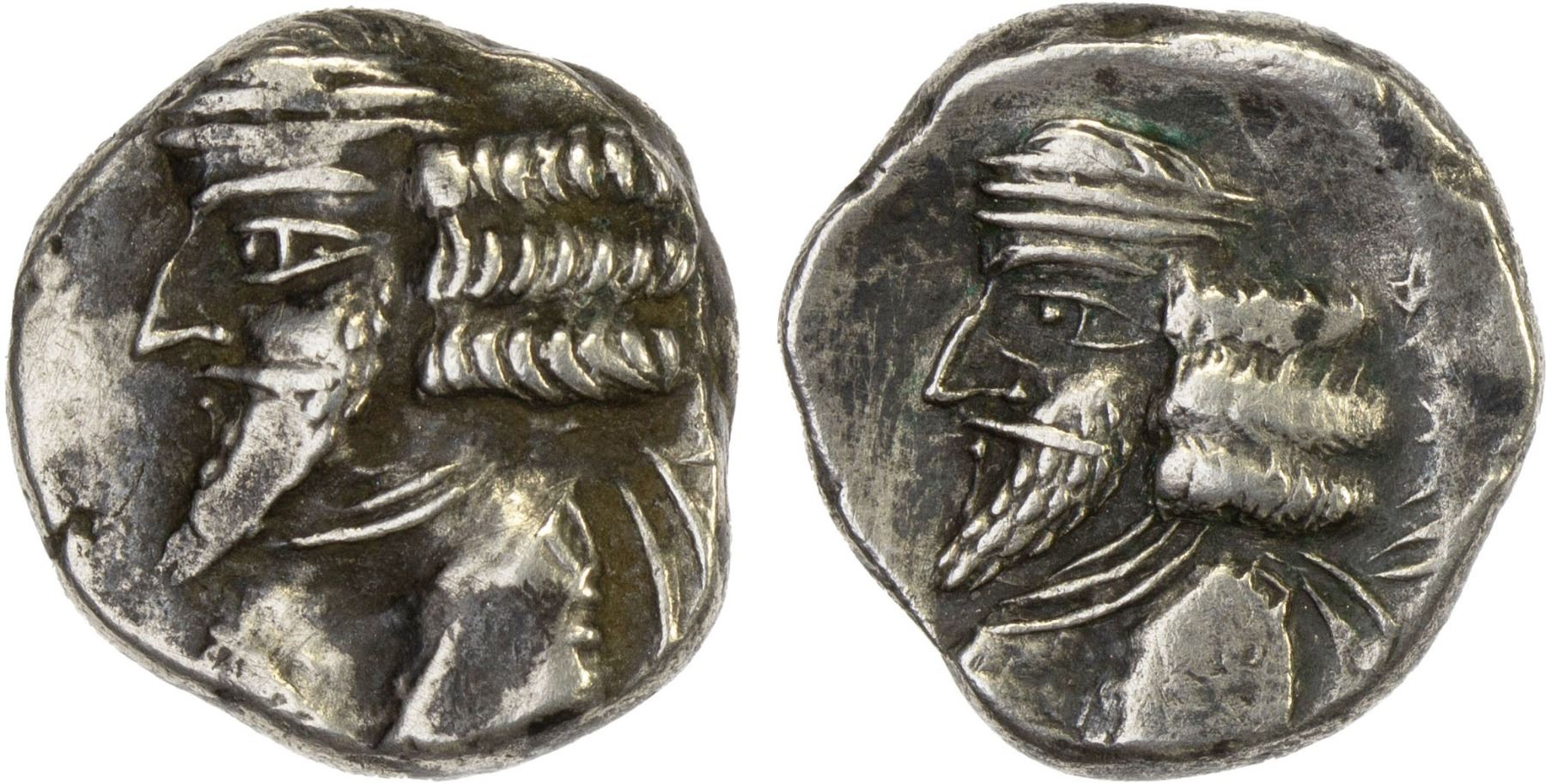 PERSIS KINGDOM: Pakor II, 1st century AD, AR drachm (3.83g), Alram-589 (Pakor I), diademed bust left // diademed bust left, attractive bold strike, Choice VF.
