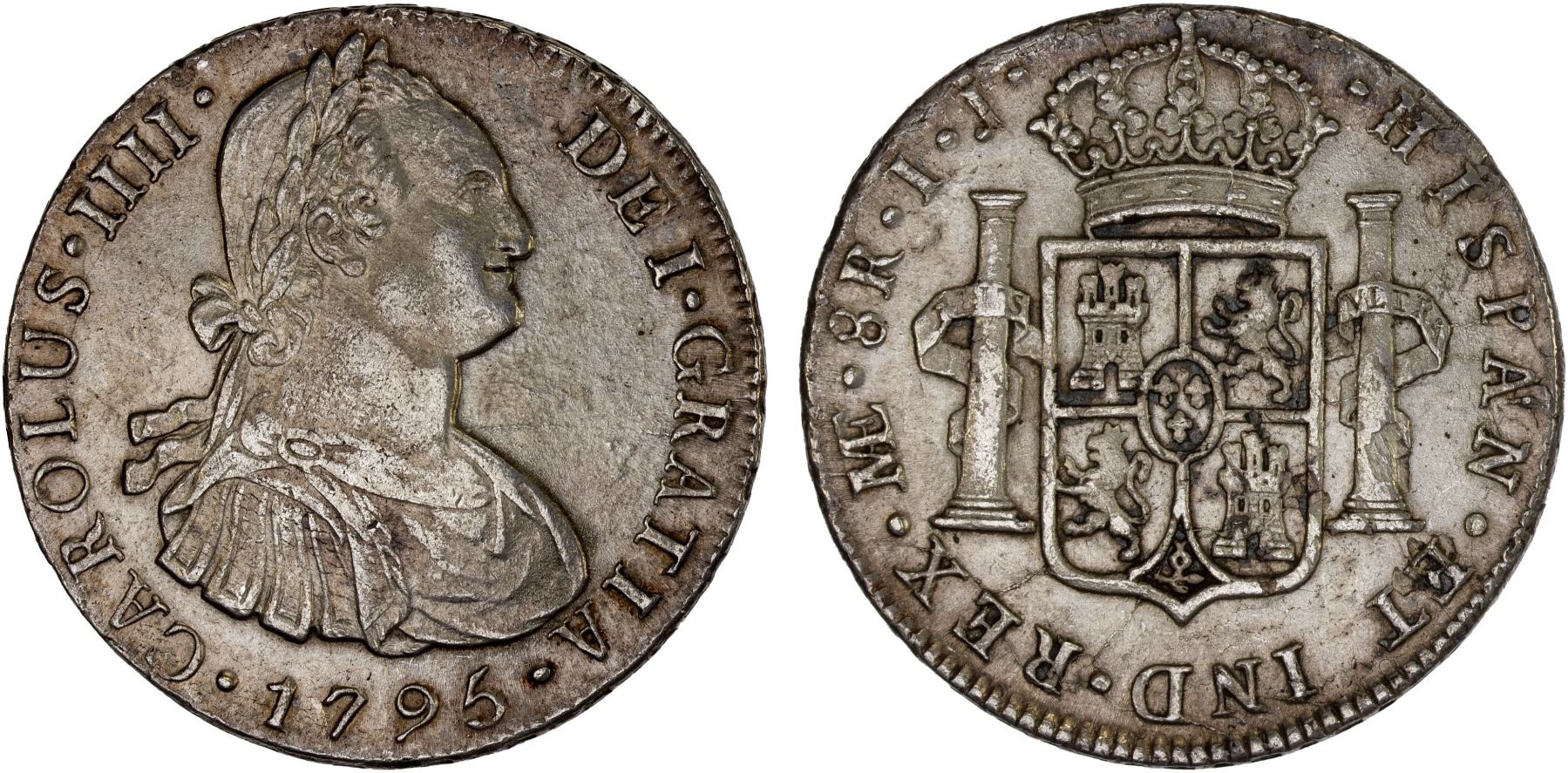 PERU: Carlos IV, 1788-1808, AR 8 reales, 1795-LIMAE, KM-97, assayer JP, lightly cleaned, some luster, XF.