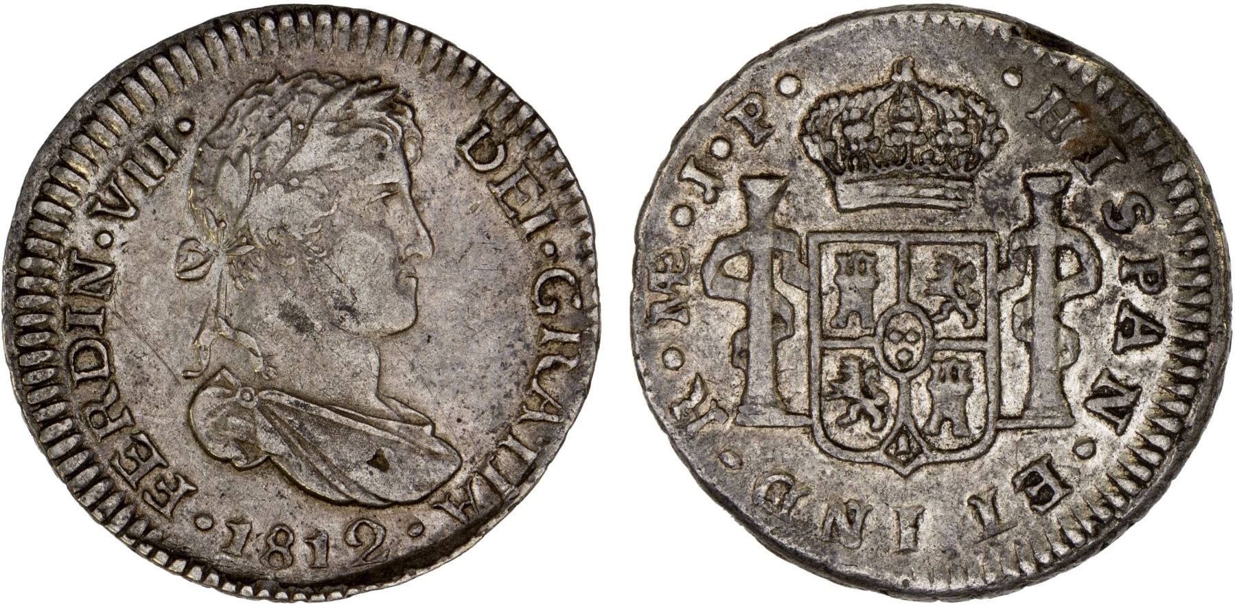 PERU: Fernando VII, 1808-1822, AR 1/2 real, 1812-LIMAE, KM-113.1, assayer JP, somewhat crude, some luster, XF.