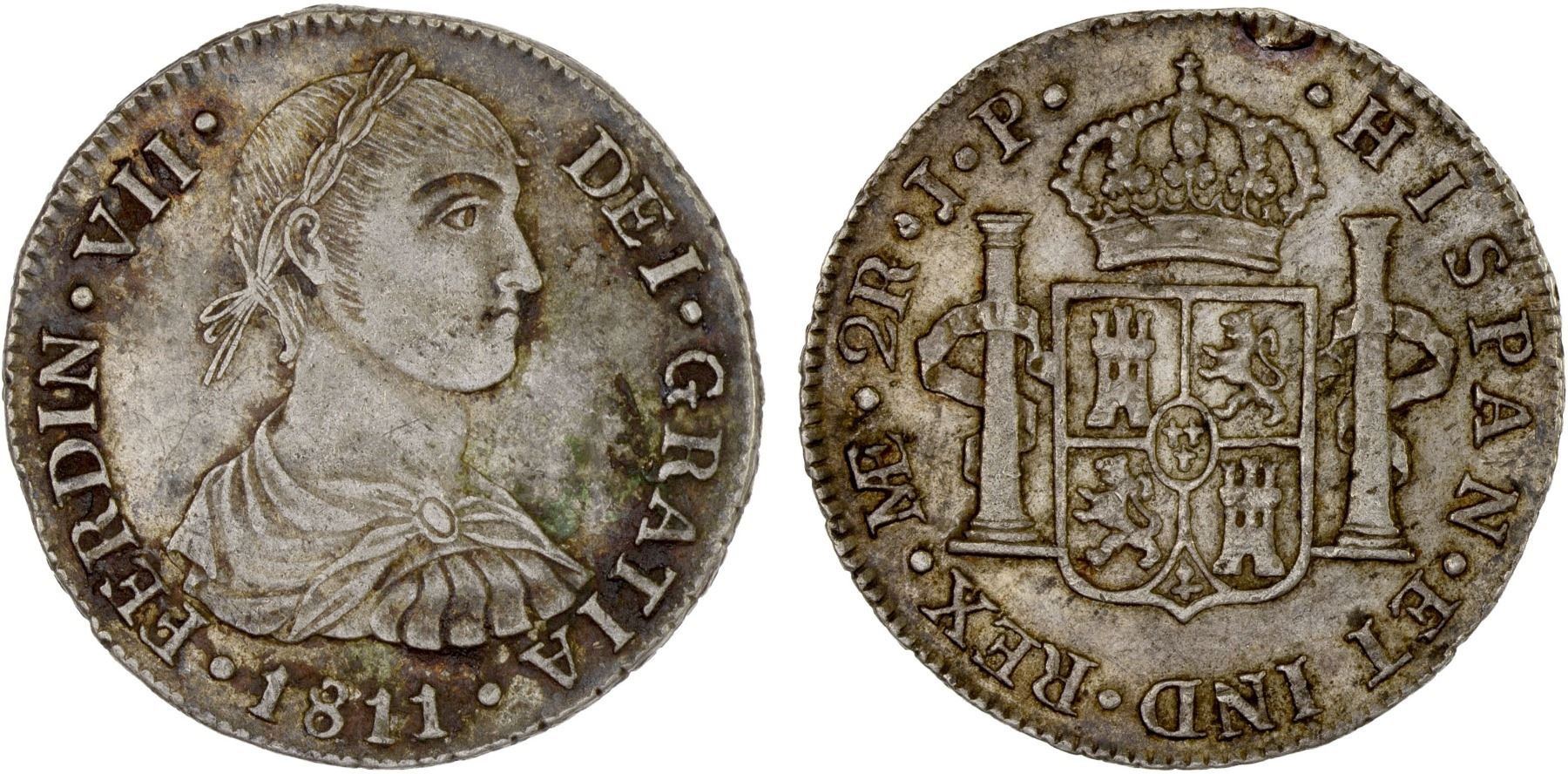 PERU: Fernando VII, 1808-1822, AR 2 reales, 1811-LIMAE, KM-104.2, assayer JP, light obverse oxidation, very well struck, XF.