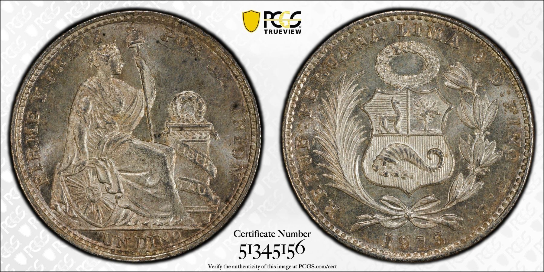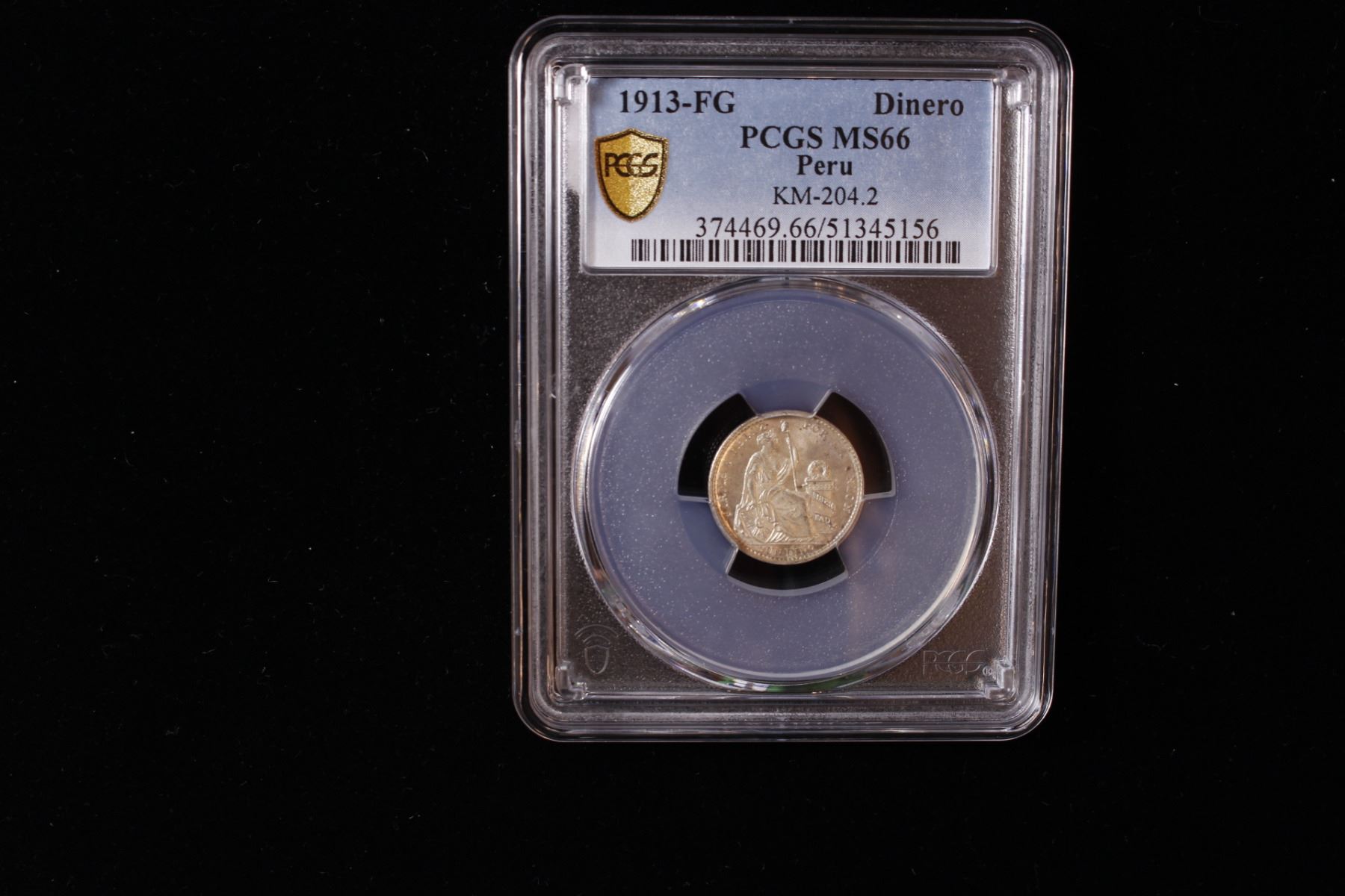 PERU: Republic, AR dinero, 1913, KM-204.2, assayer FG, a fantastic lustrous example! PCGS graded MS66