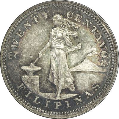 PHILIPPINES: AR 20 centavos, 1904, KM-166, NGC graded MS64.