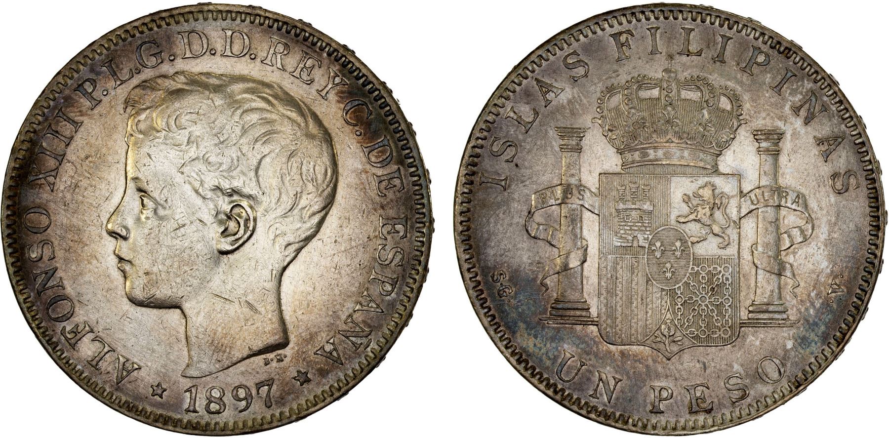 PHILIPPINES: Alfonso XIII, 1886-1931, AR peso, 1897, XF