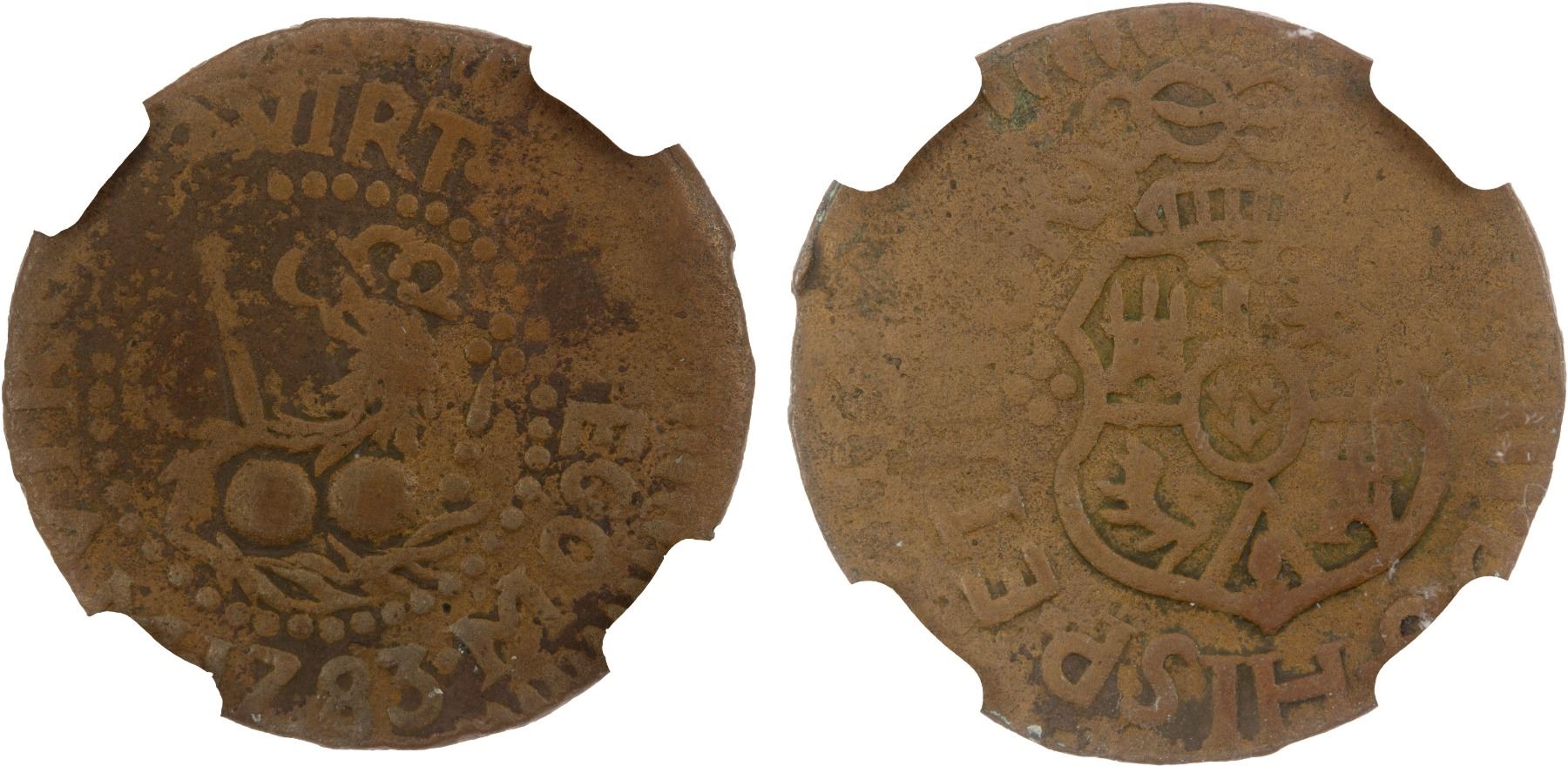 PHILIPPINES: Carlos III, 1759-1788, AE quarto, 1783, KM-2, environmental damage on label, but still quite nice for these, rare date and type, NGC graded VF details.