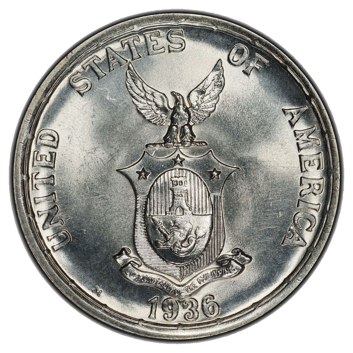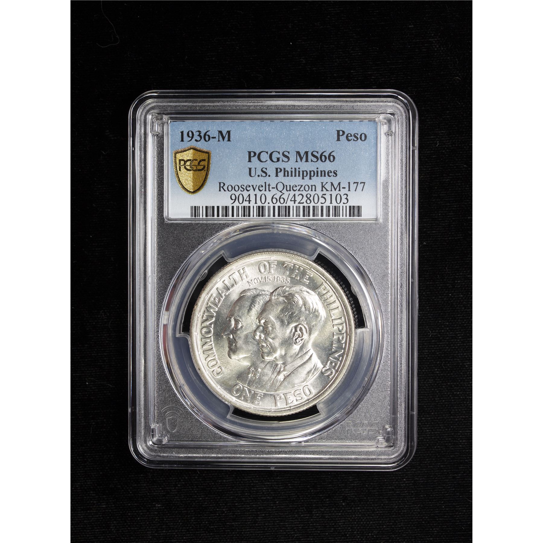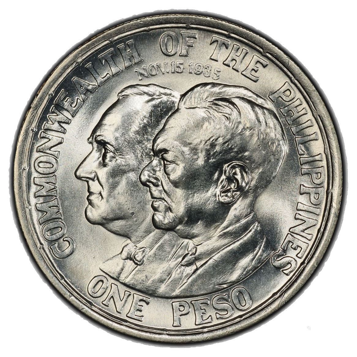 PHILIPPINES: Commonwealth, AR peso, 1936-M, KM-177, Allen-18.00, Establishment of the Commonwealth - Roosevelt and Quezon, PCGS graded MS66.