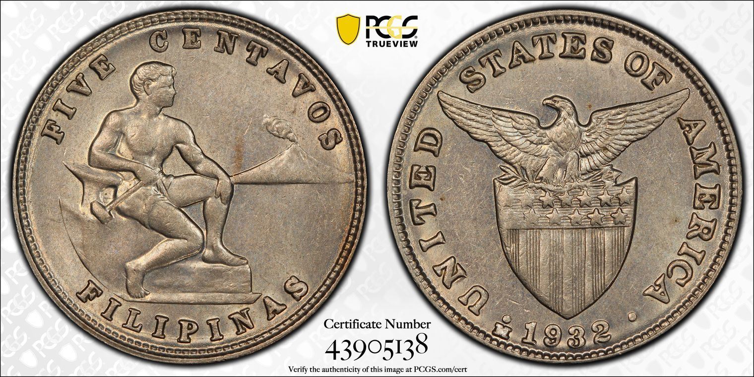 PHILIPPINES: U.S. Territory, 5 centavos, 1932-M, KM-175, a wonderful lustrous example! PCGS graded MS64, ex Joe Sedillot Collection.