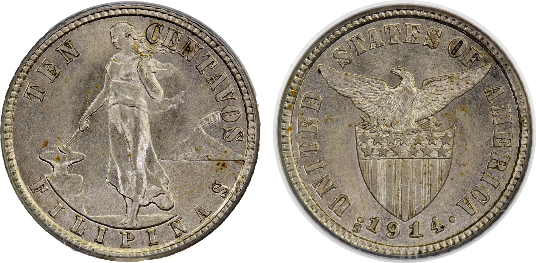 PHILIPPINES: U.S. Territory, AR 10 centavos, 1914-S, PCGS MS65
