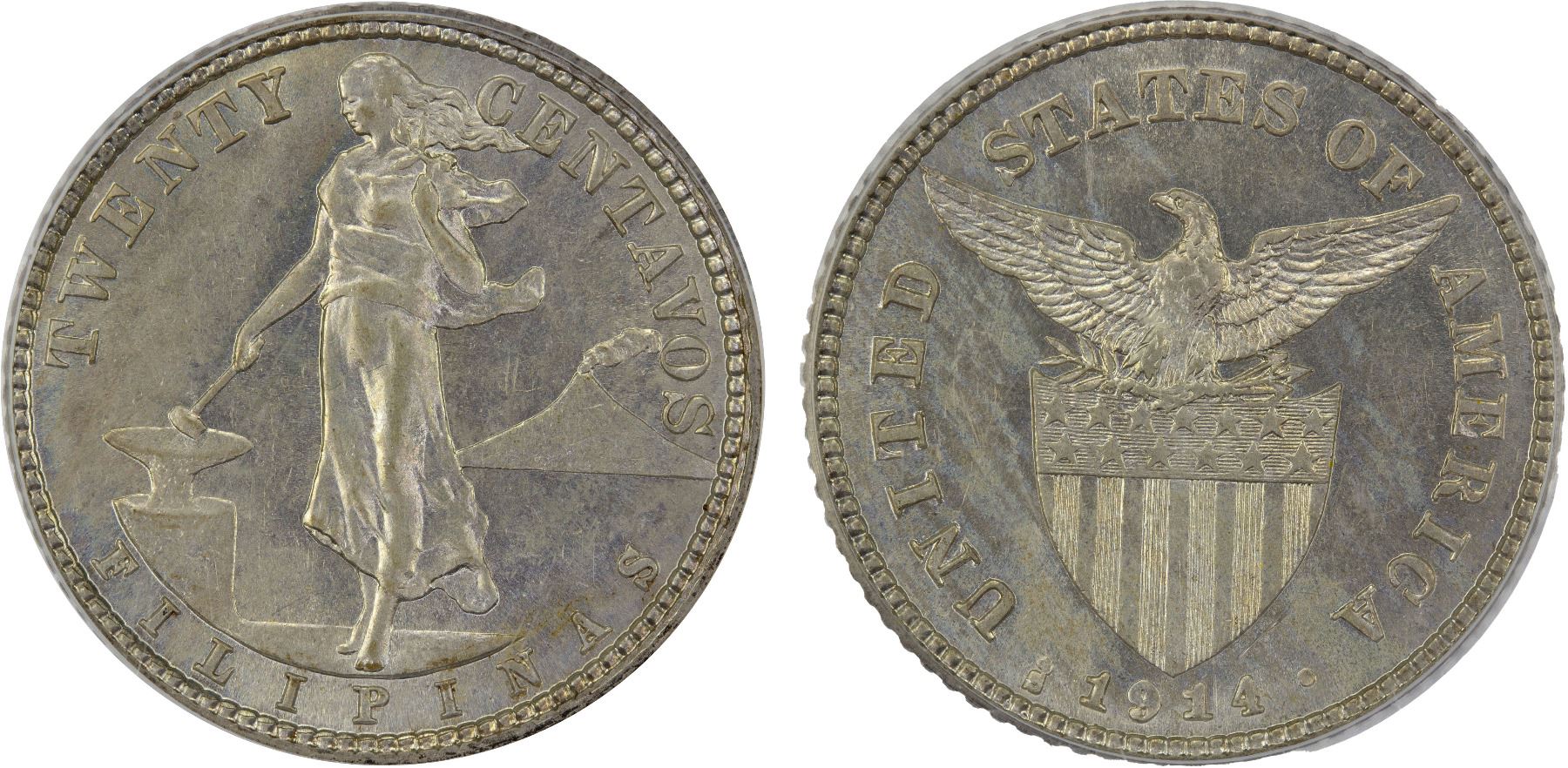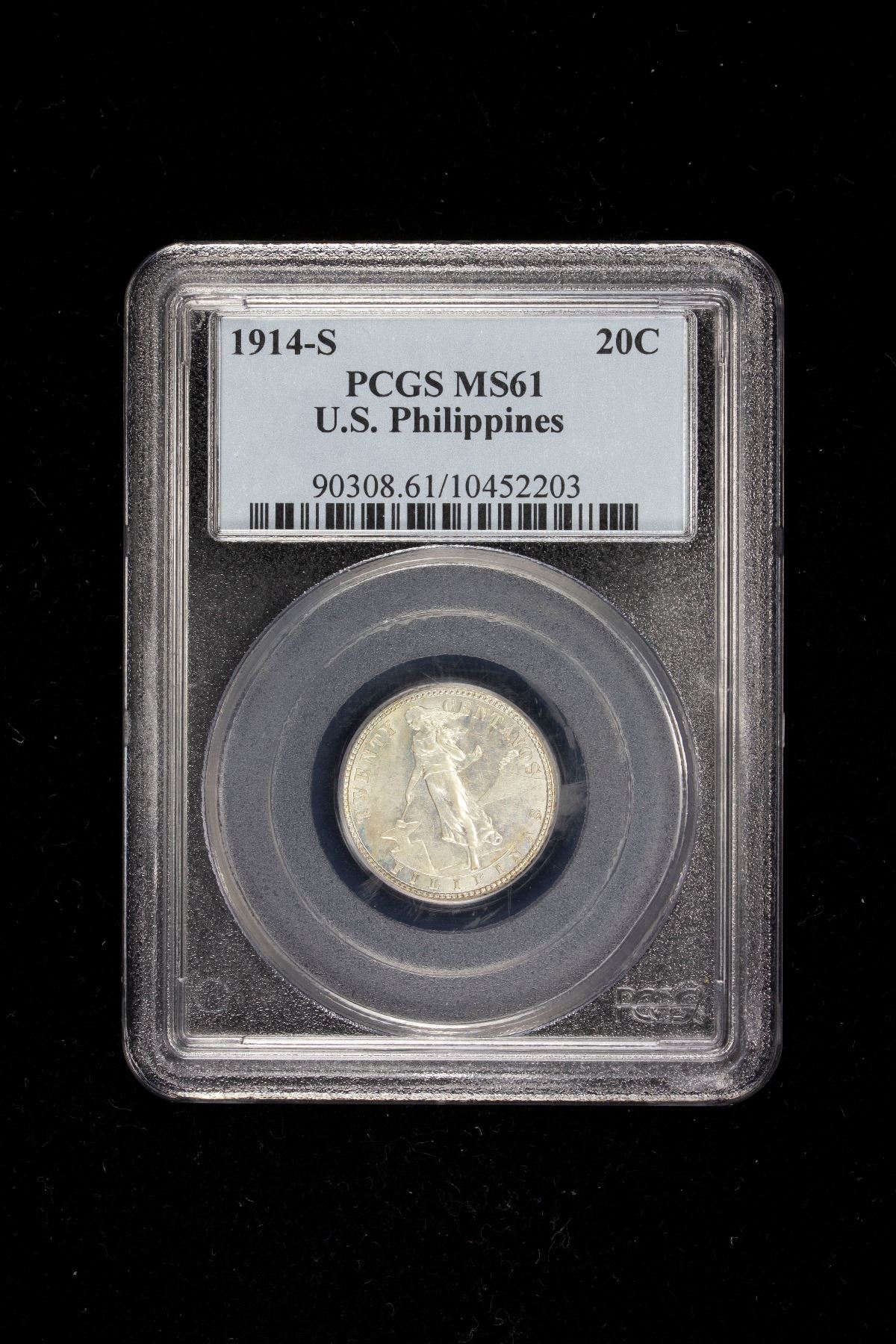 PHILIPPINES: U.S. Territory, AR 20 centavos, 1914-S, KM-170, Allen-11.10, lustrous, very attractive for the grade, PCGS graded MS61.