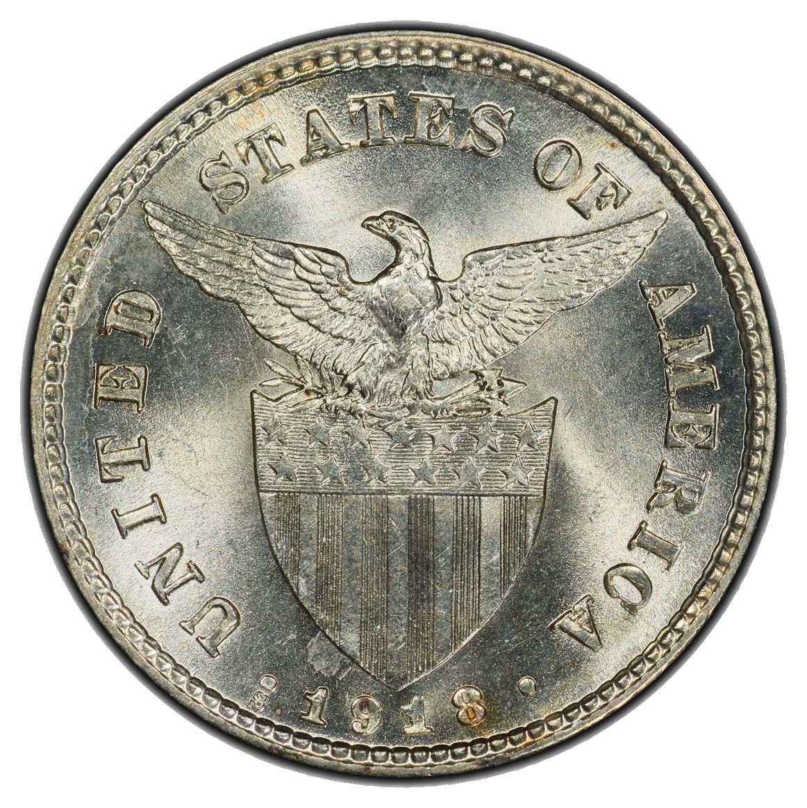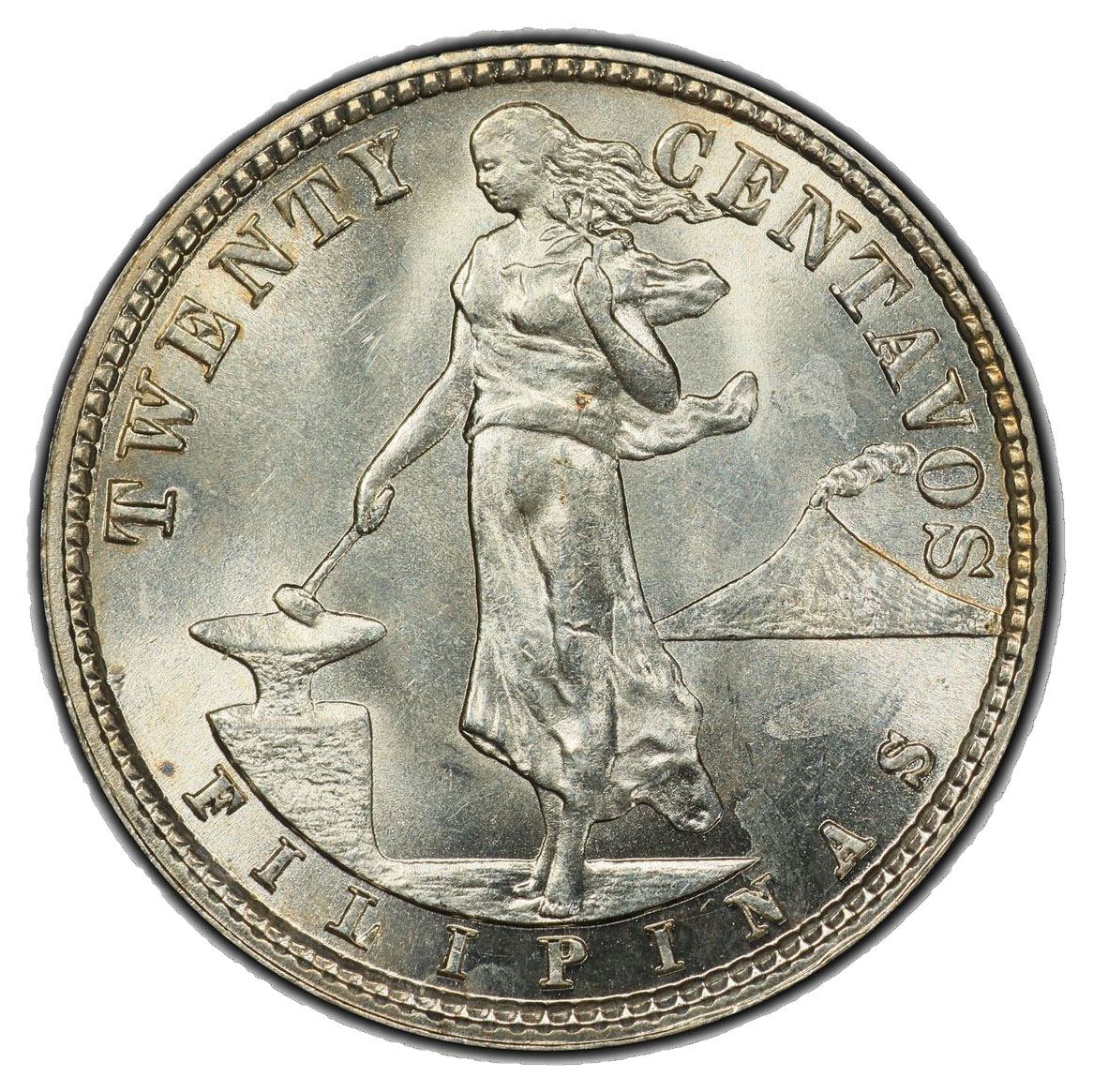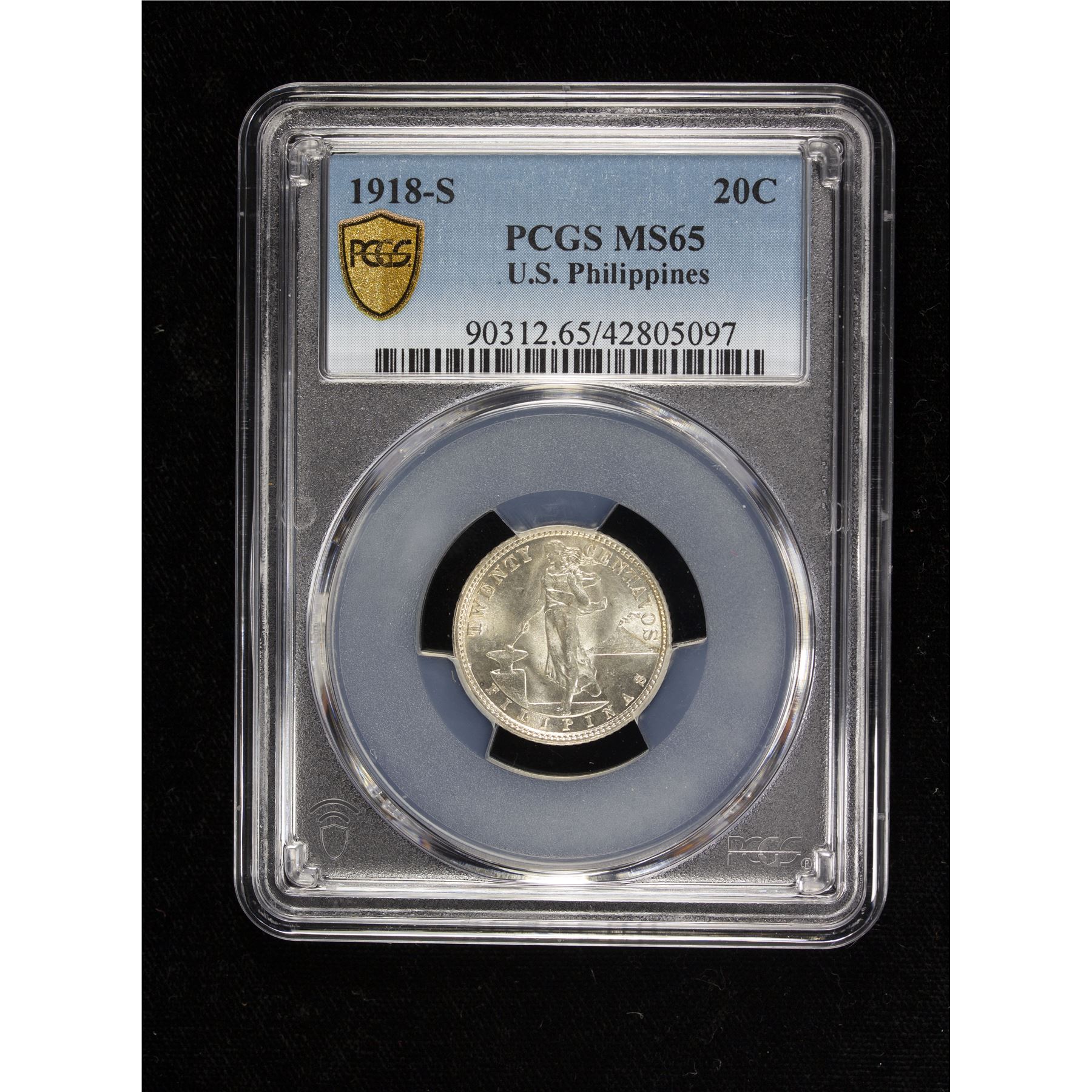 PHILIPPINES: U.S. Territory, AR 20 centavos, 1918-S, KM-170, a superb lustrous example! PCGS graded MS65.
