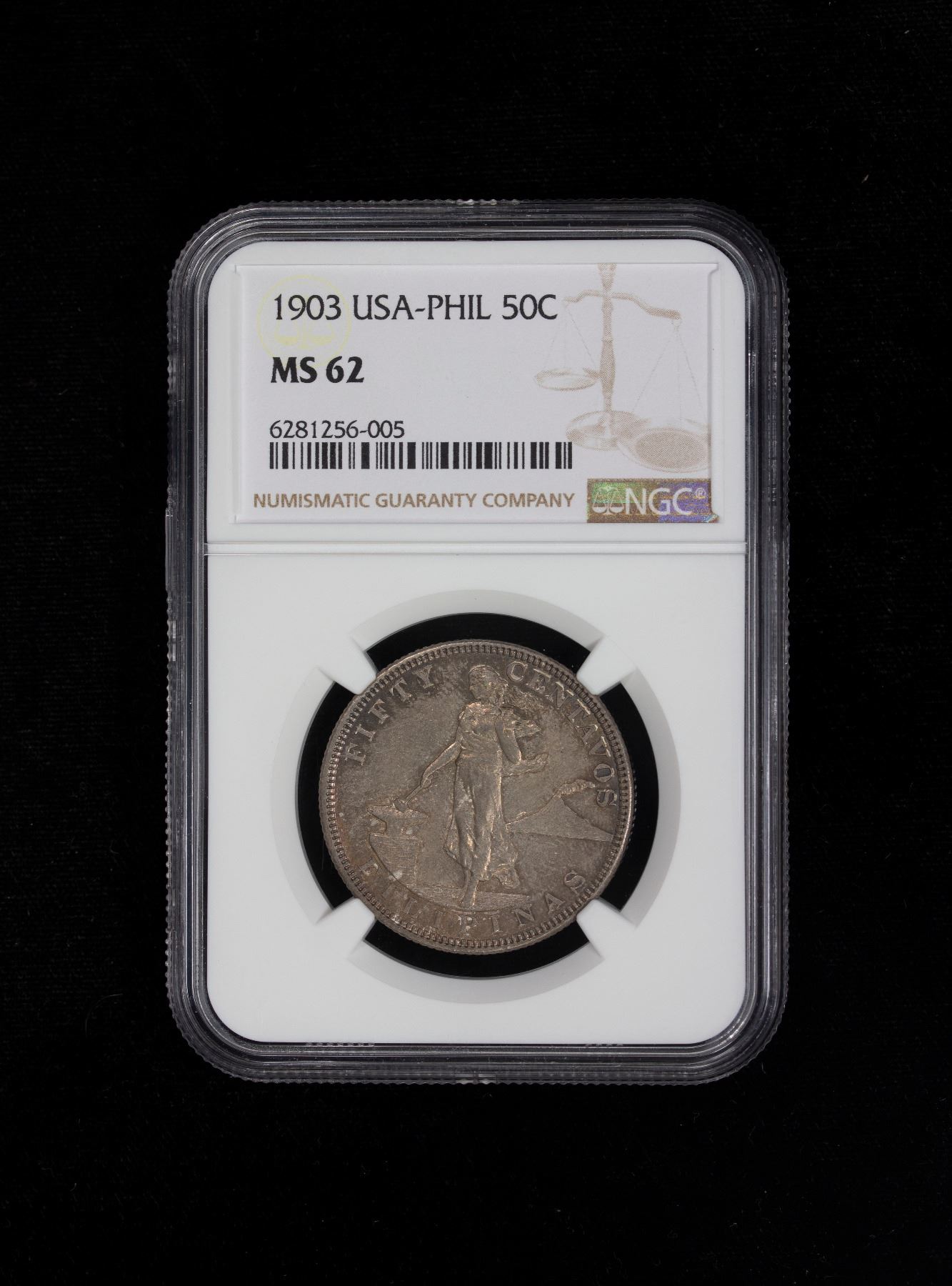PHILIPPINES: U.S. Territory, AR 50 centavos, 1903, KM-167, Philadelphia mint, nice deep toning, NGC graded MS62.