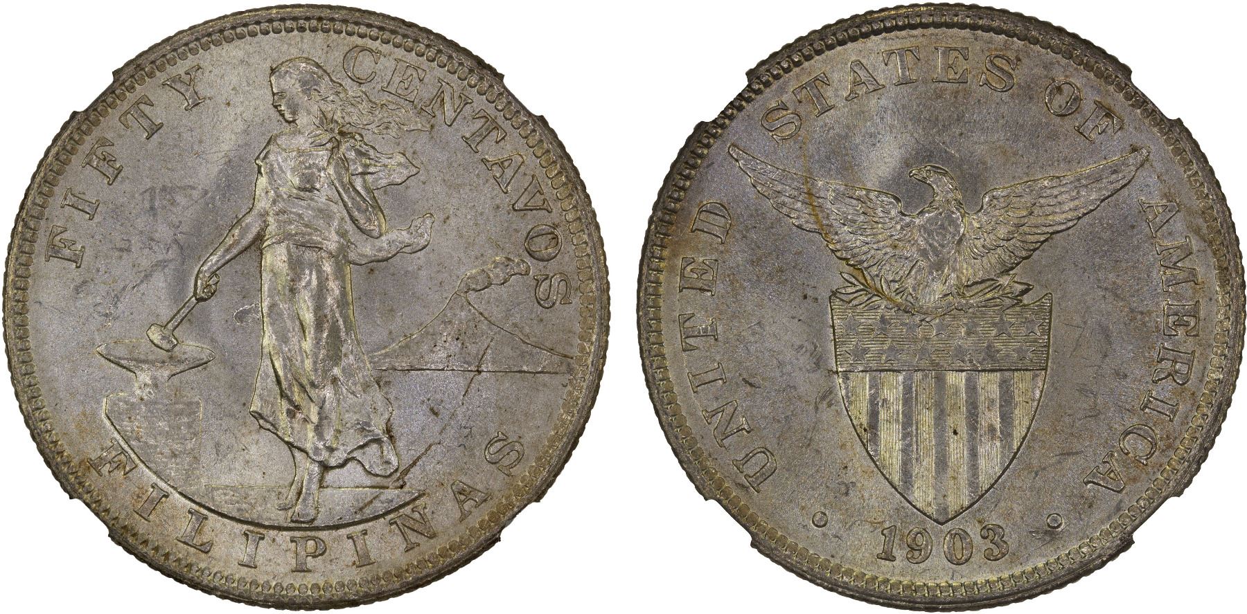 PHILIPPINES: U. S. Territory, AR 50 centavos, 1903, NGC MS62