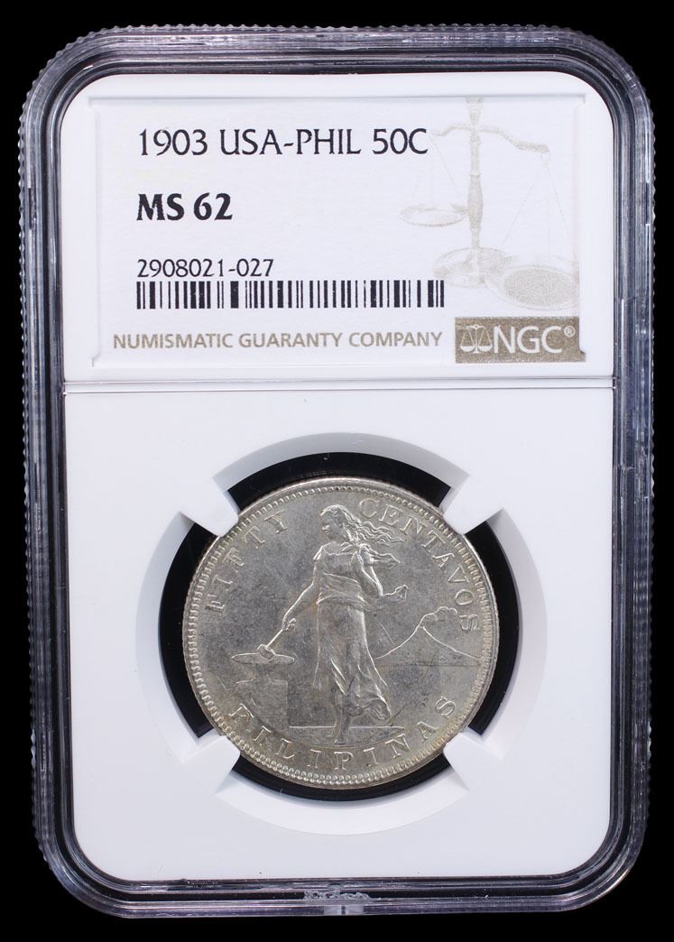 PHILIPPINES: U. S. Territory, AR 50 centavos, 1903, KM-167, lustrous, NGC graded MS62.