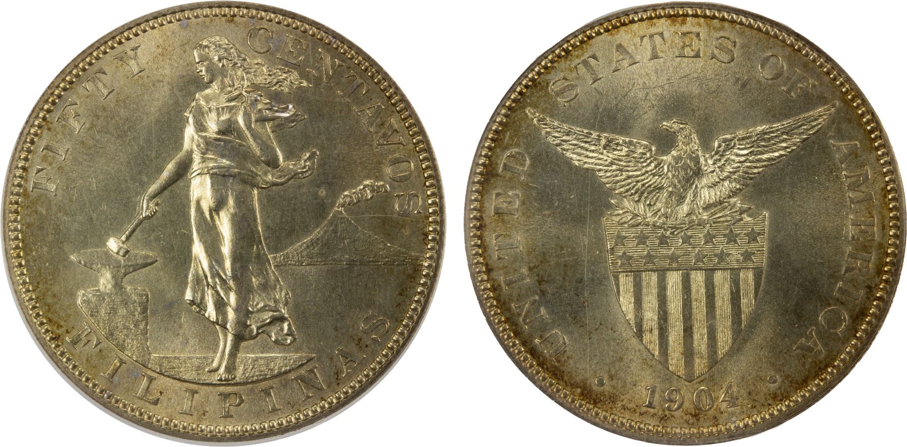 PHILIPPINES: U. S. Territory, AR 50 centavos, 1904, KM-167, a lovely lustrous example! PCGS graded MS63. Housed in old PCGS green GEN3.0 holder (OGH).