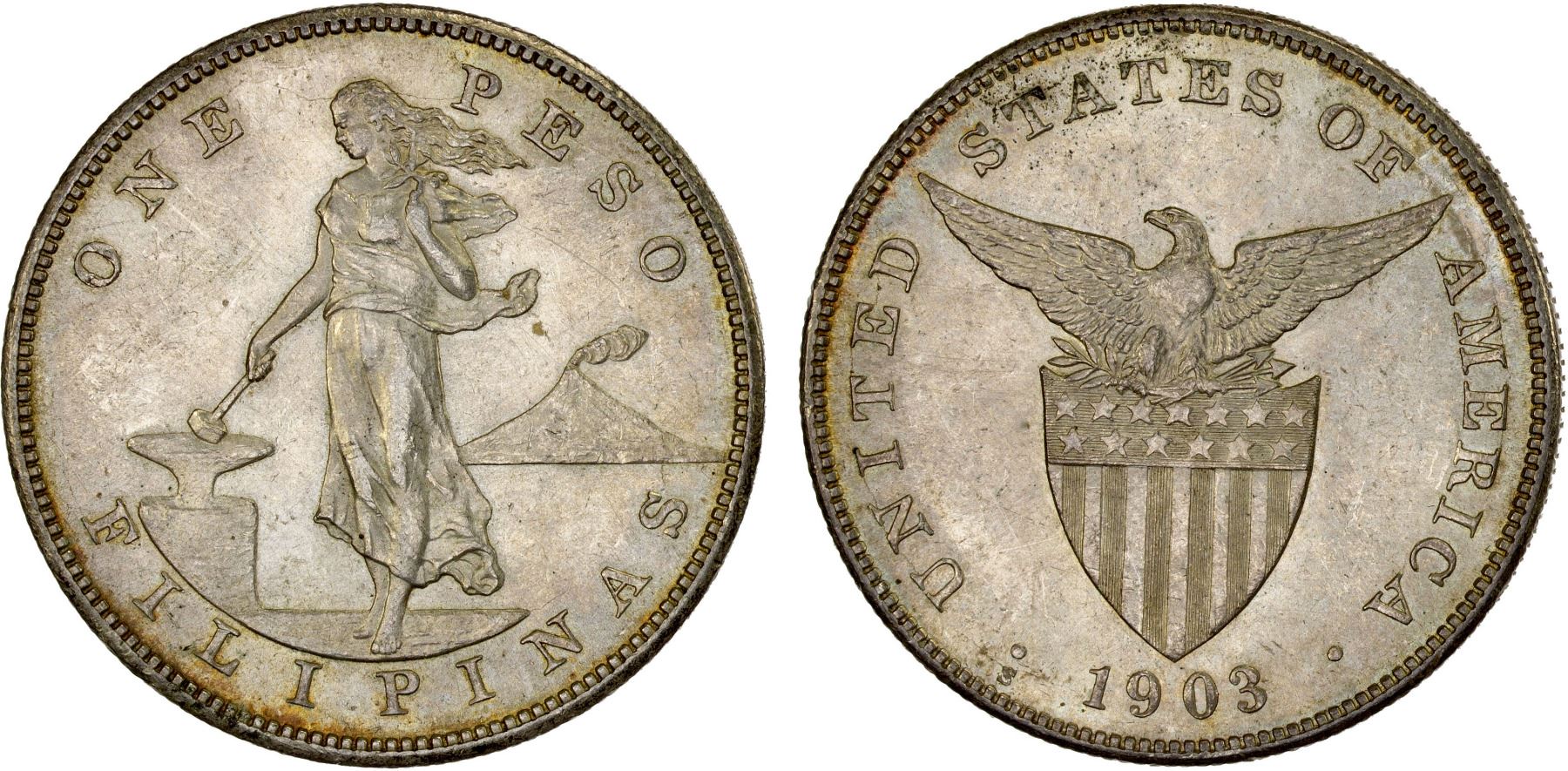 PHILIPPINES: U.S. Territory, AR peso, 1903-S, KM-168, lightly cleaned, but still very attractive, starting to retone, Choice AU.