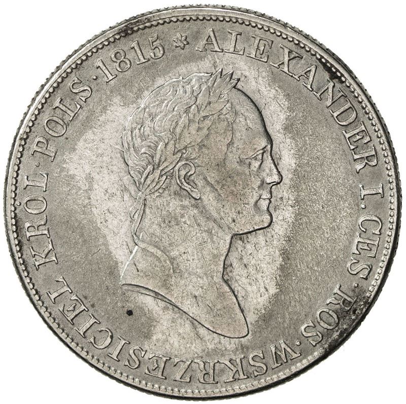 POLAND: AR 5 zlotych, 1831, Cr-116, initials KG, light oxidation, VF.