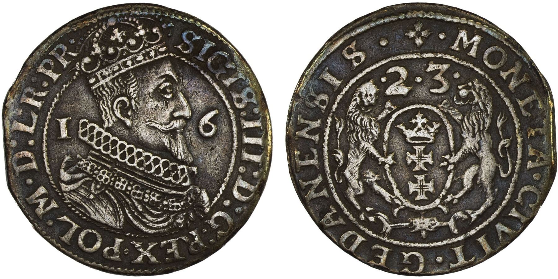 POLAND: DANZIG: Sigismund III, 1587-1632, AR ort (1/4 thaler, 10 groszy), 1623, VF