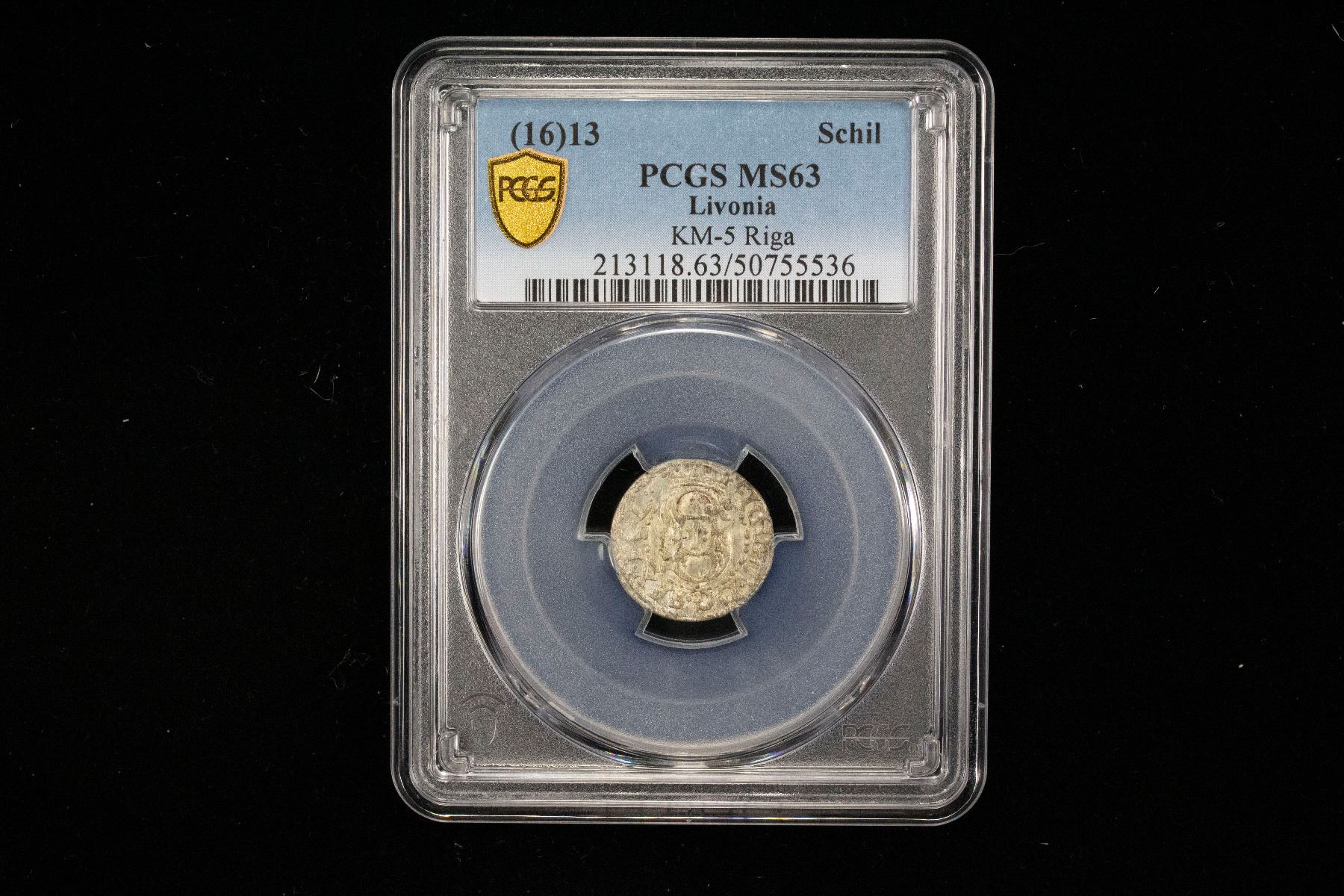 POLISH LIVONIA: Sigismund III, 1587-1629, BI schilling, Riga, 1613, PCGS MS63