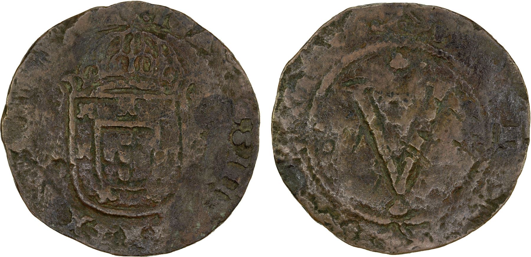 PORTUGAL: João IV, 1640-1656, AE 5 reis (10.24g), Lisbon, ND, KM-27, struck 1645-56, VG.