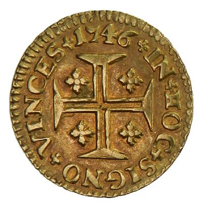 PORTUGAL: João V, 1706-1750, AV 400 reis (1.01g), 1746, KM-201, EF.