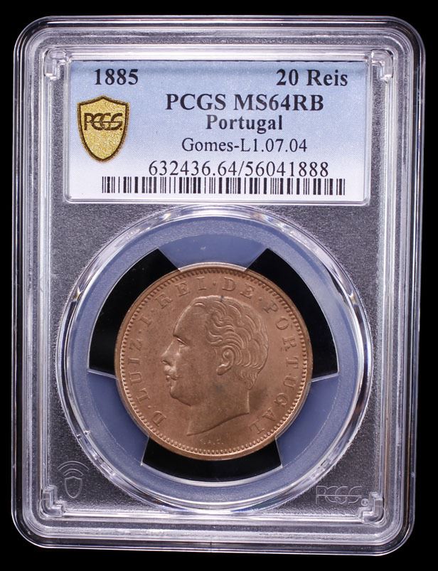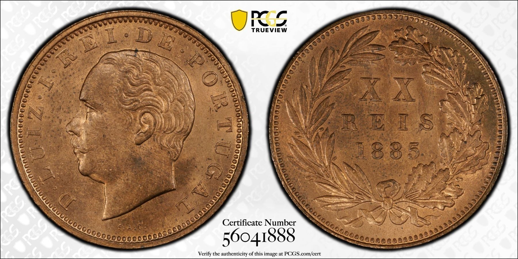 PORTUGAL: Luis I, 1861-1889, AE 20 reis, 1885, PCGS MS64 RB