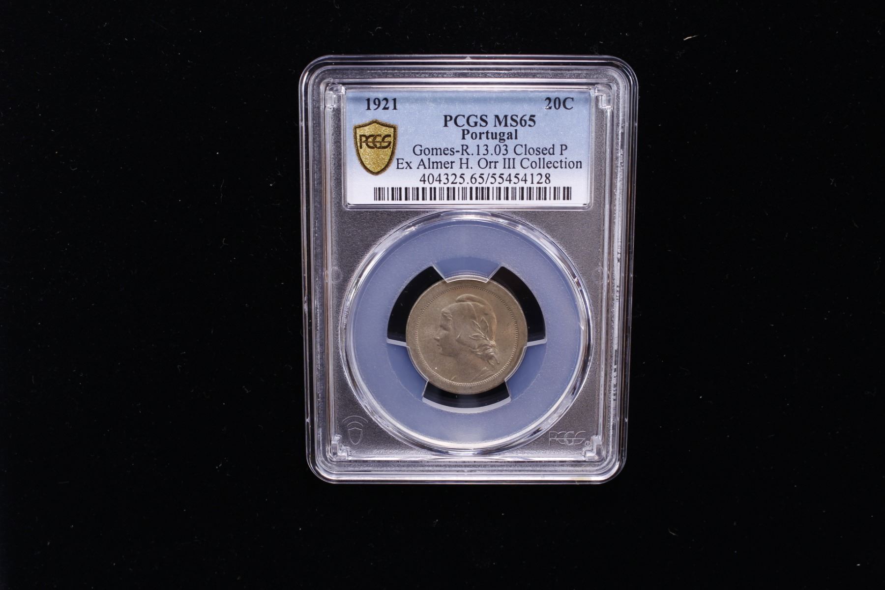 PORTUGAL: Republic, 20 centavos, 1921, KM-571, Y-44, lustrous, lightly toned, PCGS graded MS65, ex Almer H. Orr III Collection.