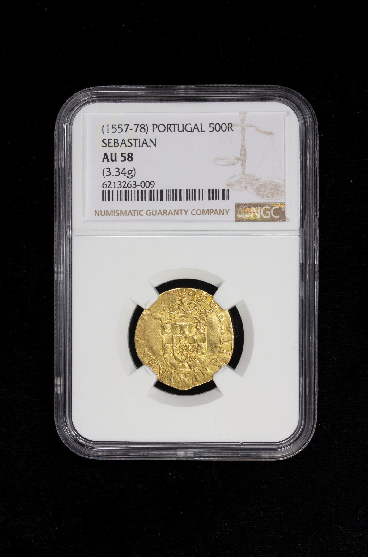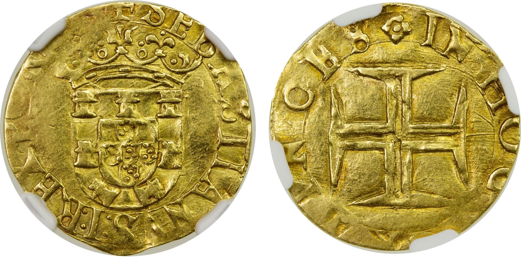 PORTUGAL: Sebastian, 1557-1578, AV 500 reis (cruzado) (3.34g), Lisbon Mint, ND (from 1560), a rarely encountered type from the age of exploration, a lovely nearly mint state example, NGC graded AU58.