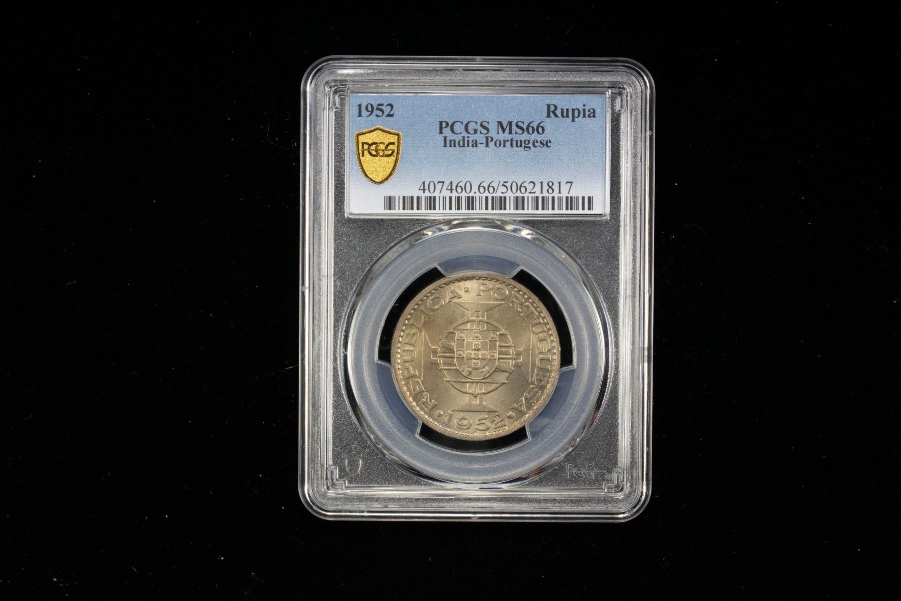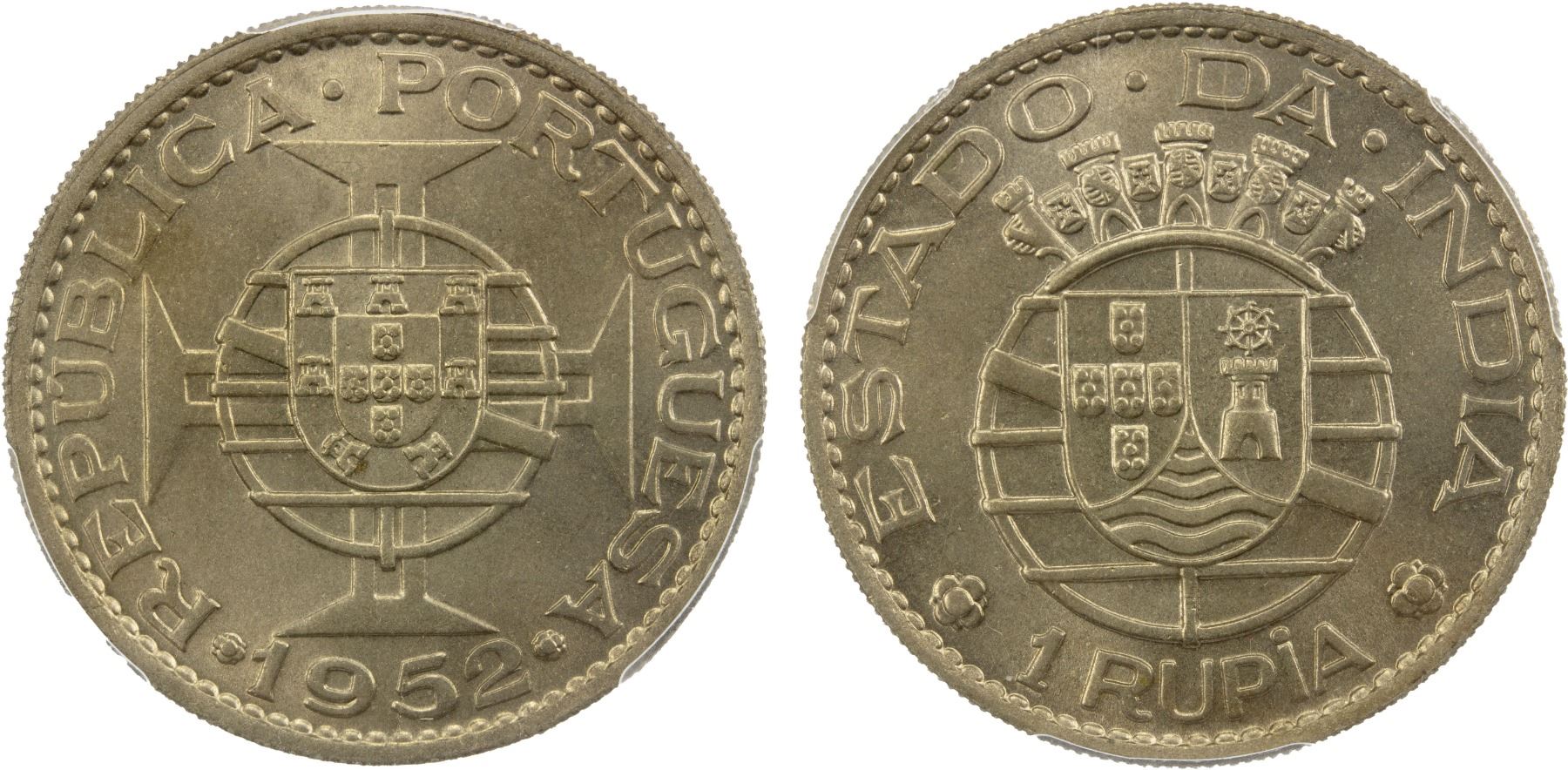 PORTUGUESE INDIA: 1 rupia, 1952, KM-29, one year type, a fantastic lustrous mint state example! PCGS graded MS66.