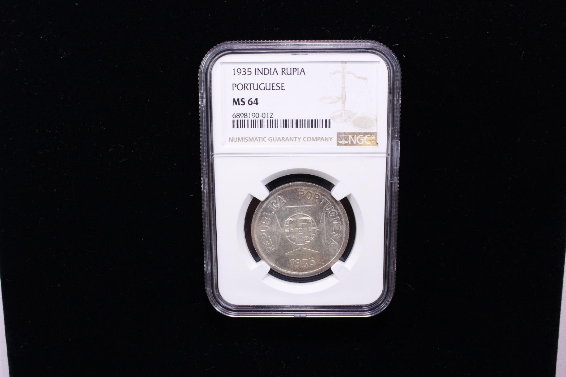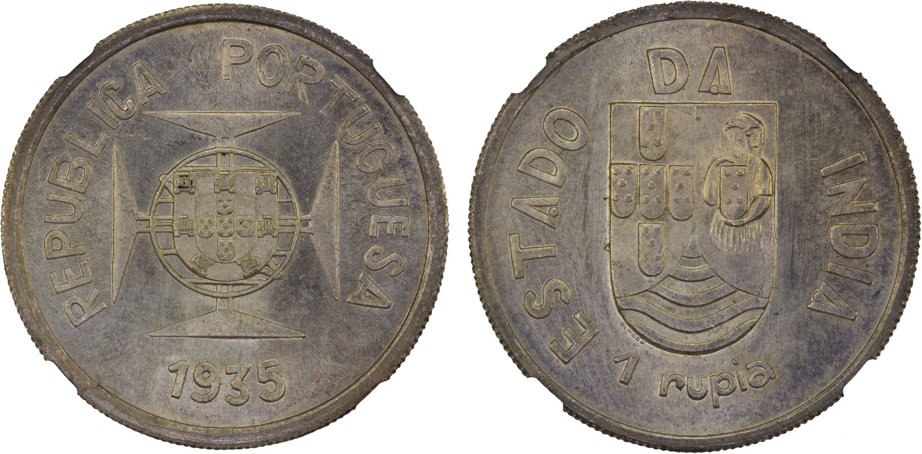 PORTUGUESE INDIA: AR rupia, 1935, KM-22, one-year type, a wonderful mint state example! NGC graded MS64.
