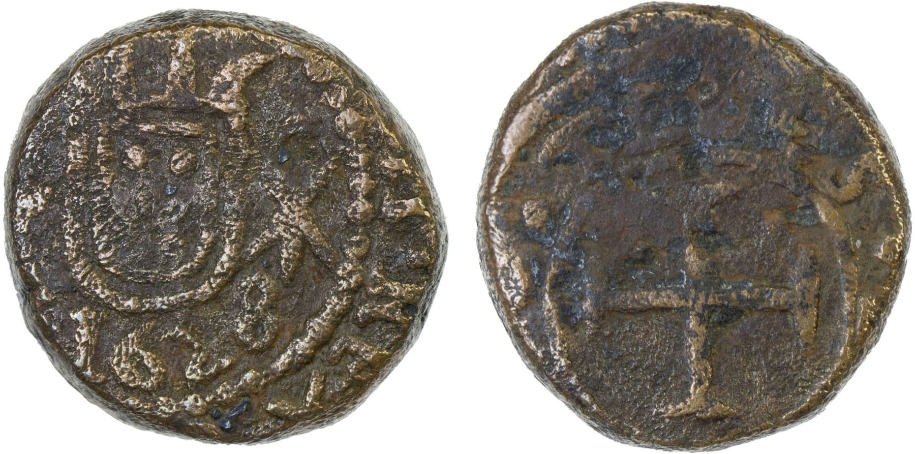 DIU: Filipe III, 1621-1640, AE bazaruco (7.16g), 1628, KM-Tn1, Gomes-01, also in the name of Antonio Telles, as duke, struck 1626-1628; porous surfaces but a nice strike with full date, F-VF, R.