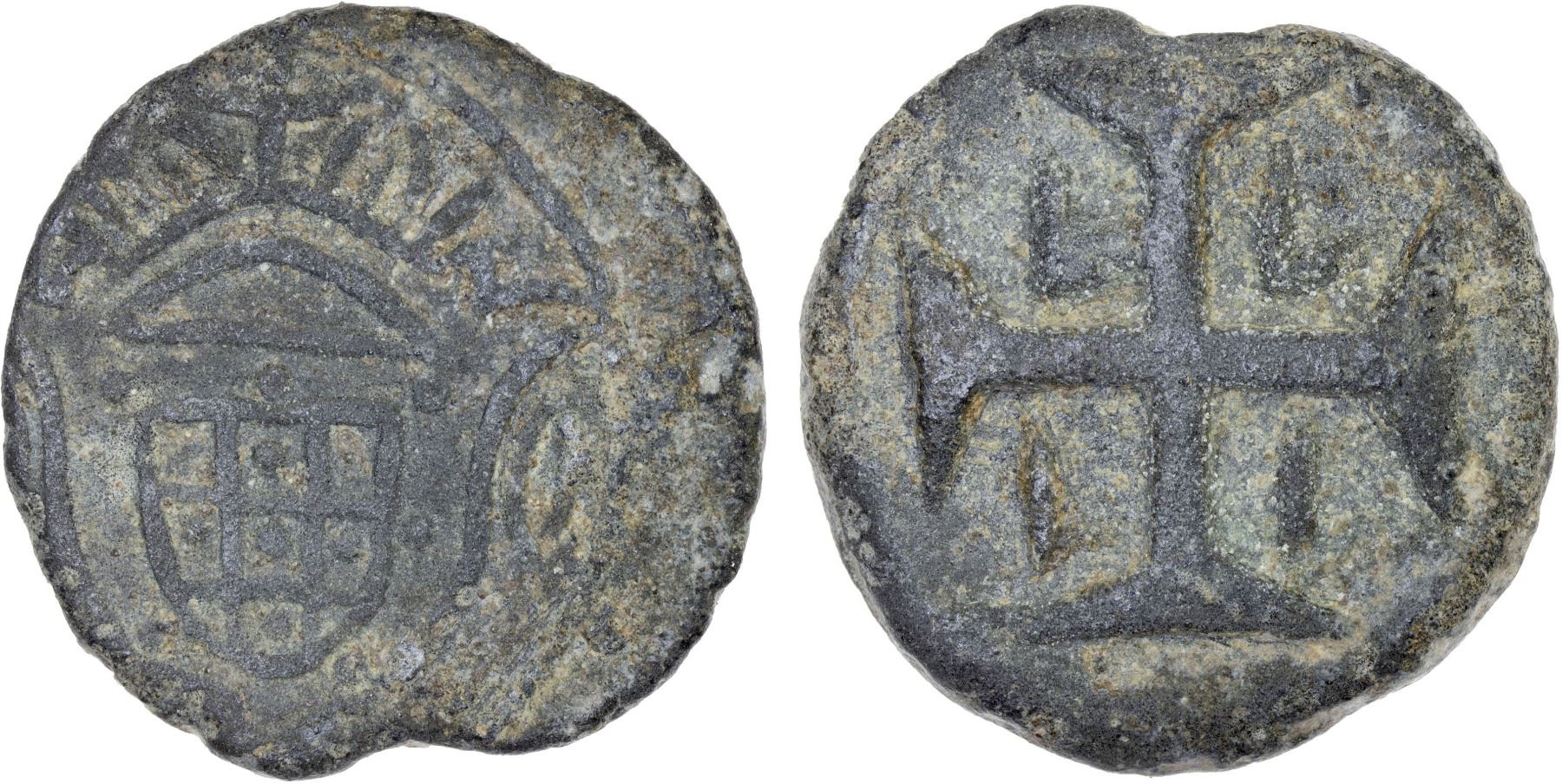 DIU: José I, 1750-1777, tutenag (tin) 20 bazarucos (17.05g), 1777, KM-36, nicely detailed for type, VF, From an old French collection assembled during the 1920s and earlier.