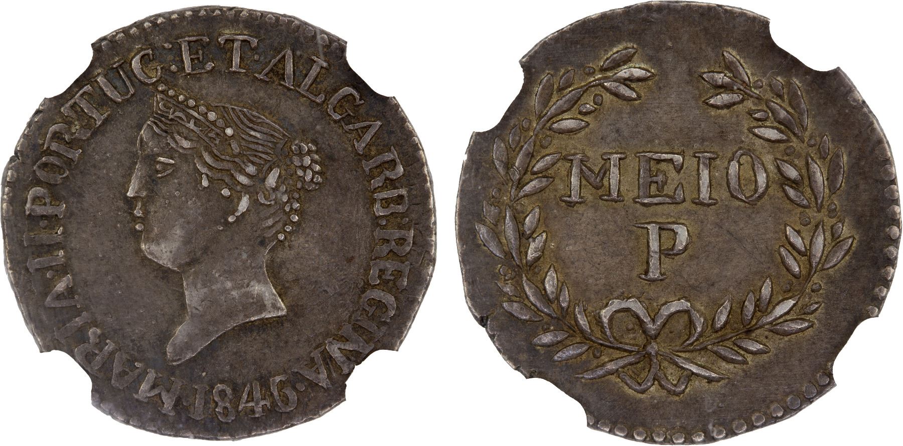 PORTUGUESE INDIA: GOA: Maria II, 1834-1853, AR 1/2 pardao, 1846/5, NGC AU58