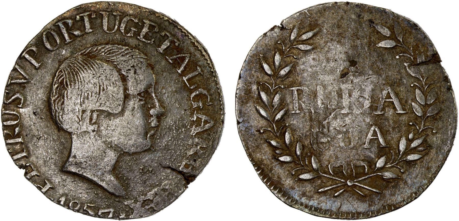 PORTUGUESE INDIA: GOA: Pedro V, 1853-1861, AR rupia, 1857, F-VF