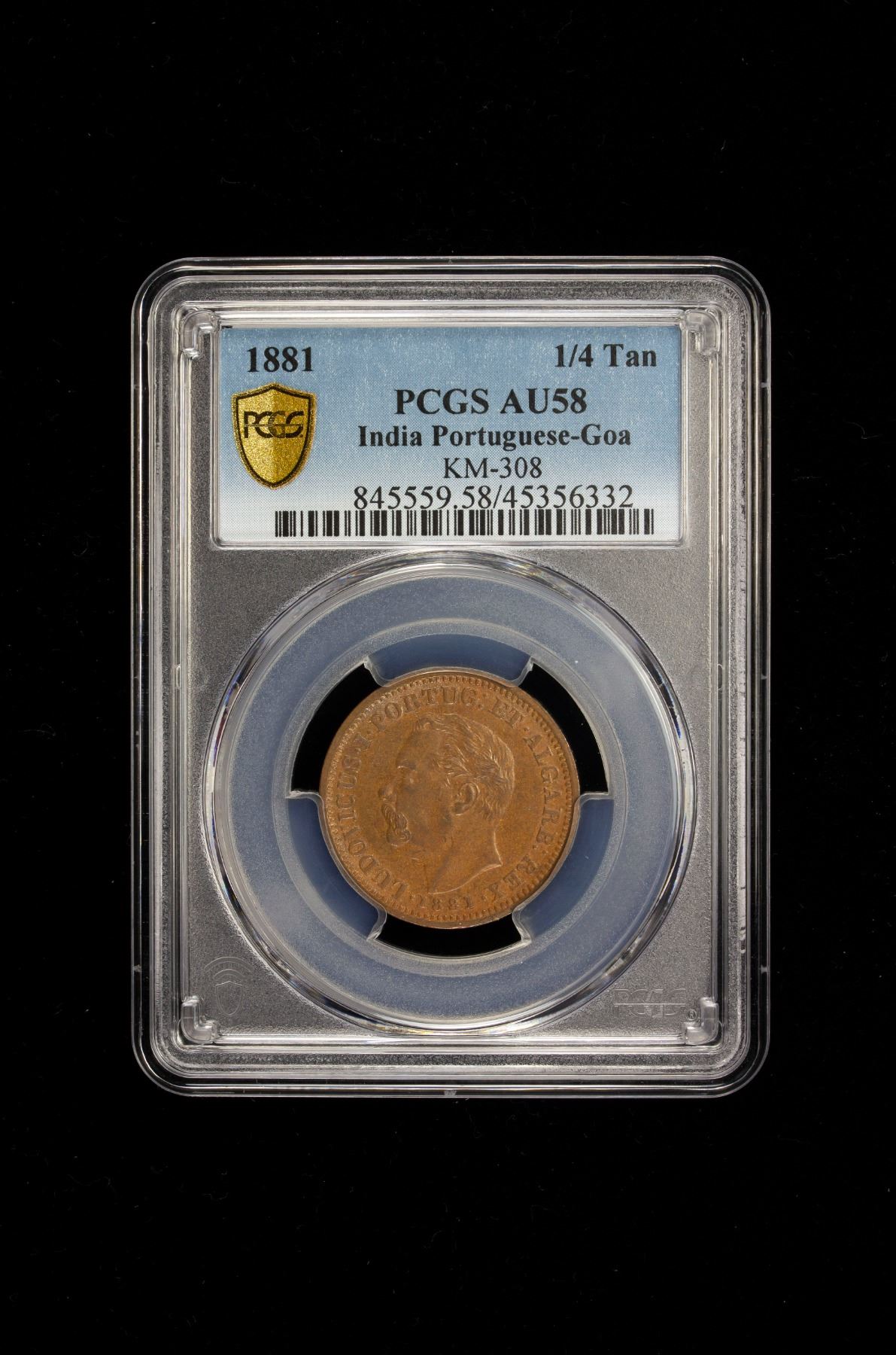 PORTUGUESE INDIA: Luíz I, 1861-1889, AE 1/4 tanga, 1881, PCGS AU58