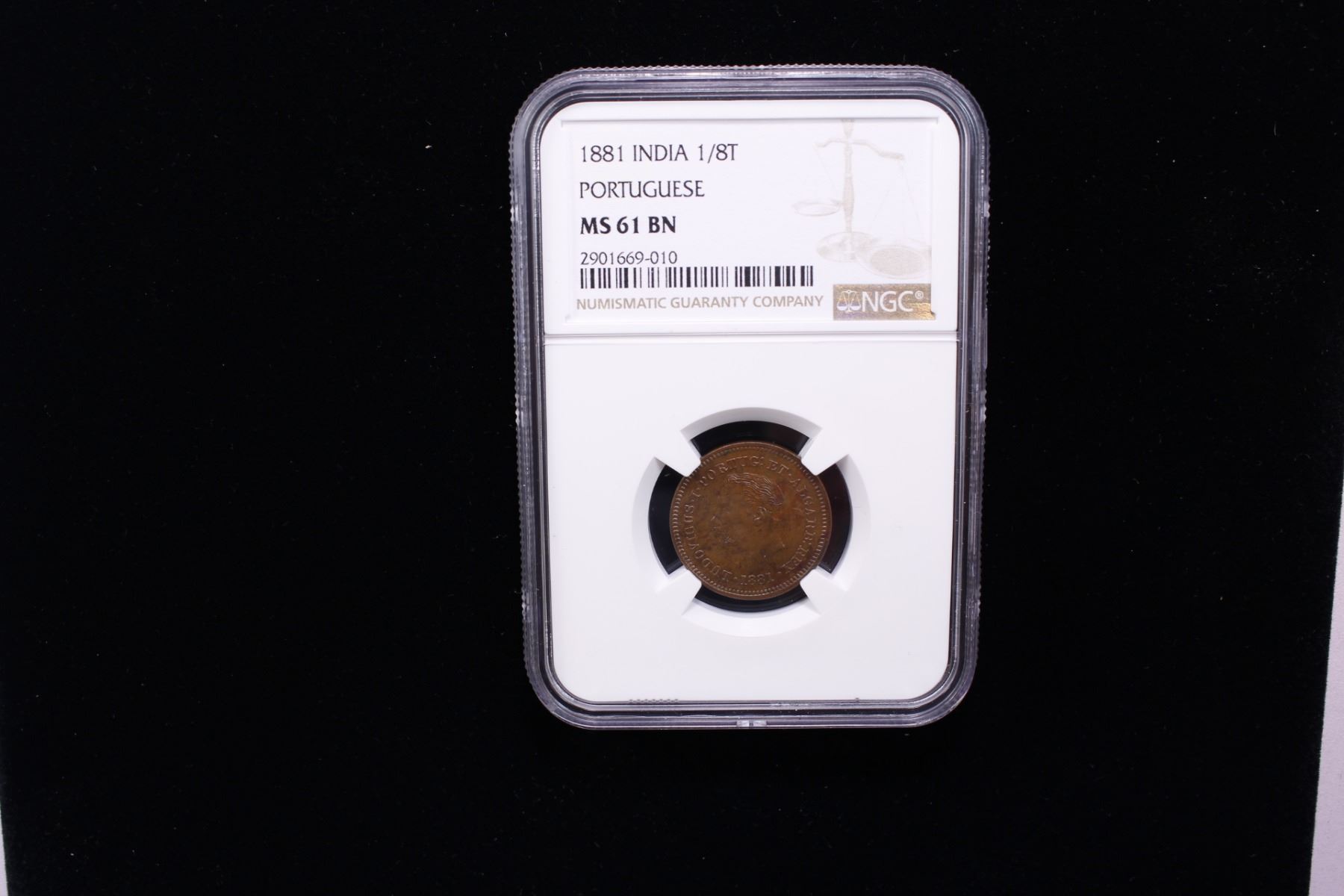 PORTUGUESE INDIA: Luiz I, 1861-1889, 1/8 tanga (oitavo), 1881, NGC MS61
