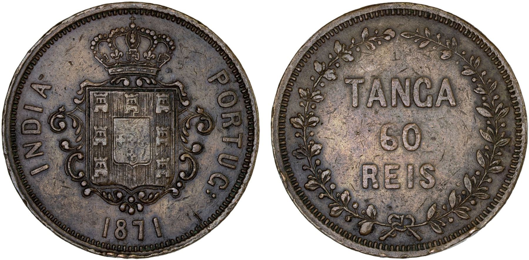 PORTUGUESE INDIA: Luiz I, 1861-1889, AE tanga (60 reis) (38.26g), 1871, lovely VF