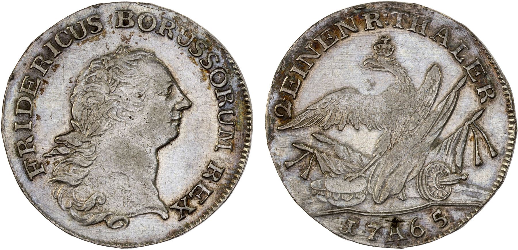 PRUSSIA: Friderich II (the Great), 1740-1786, AR 1/2 thaler, Berlin, 1765-A, XF