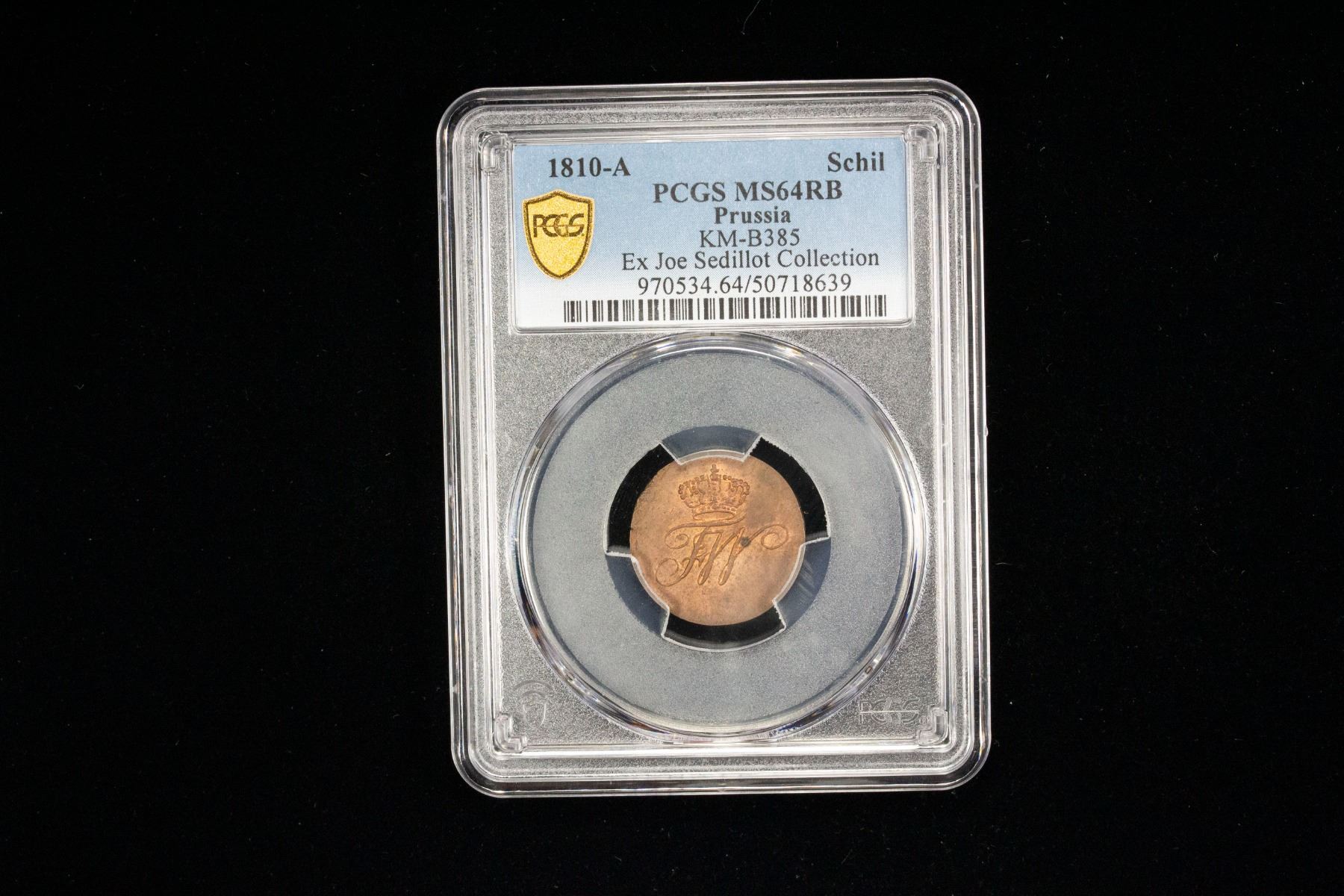 PRUSSIA: Friedrich Wilhelm III, 1797-1840, AE schilling, 1810-A, KM-B385, J-18c, AKS-45, a wonderful lustrous caramel red brown mint state example, PCGS graded MS64 RB, ex Joe Sedillot Collection. Finest graded 'top pop' by PCGS!