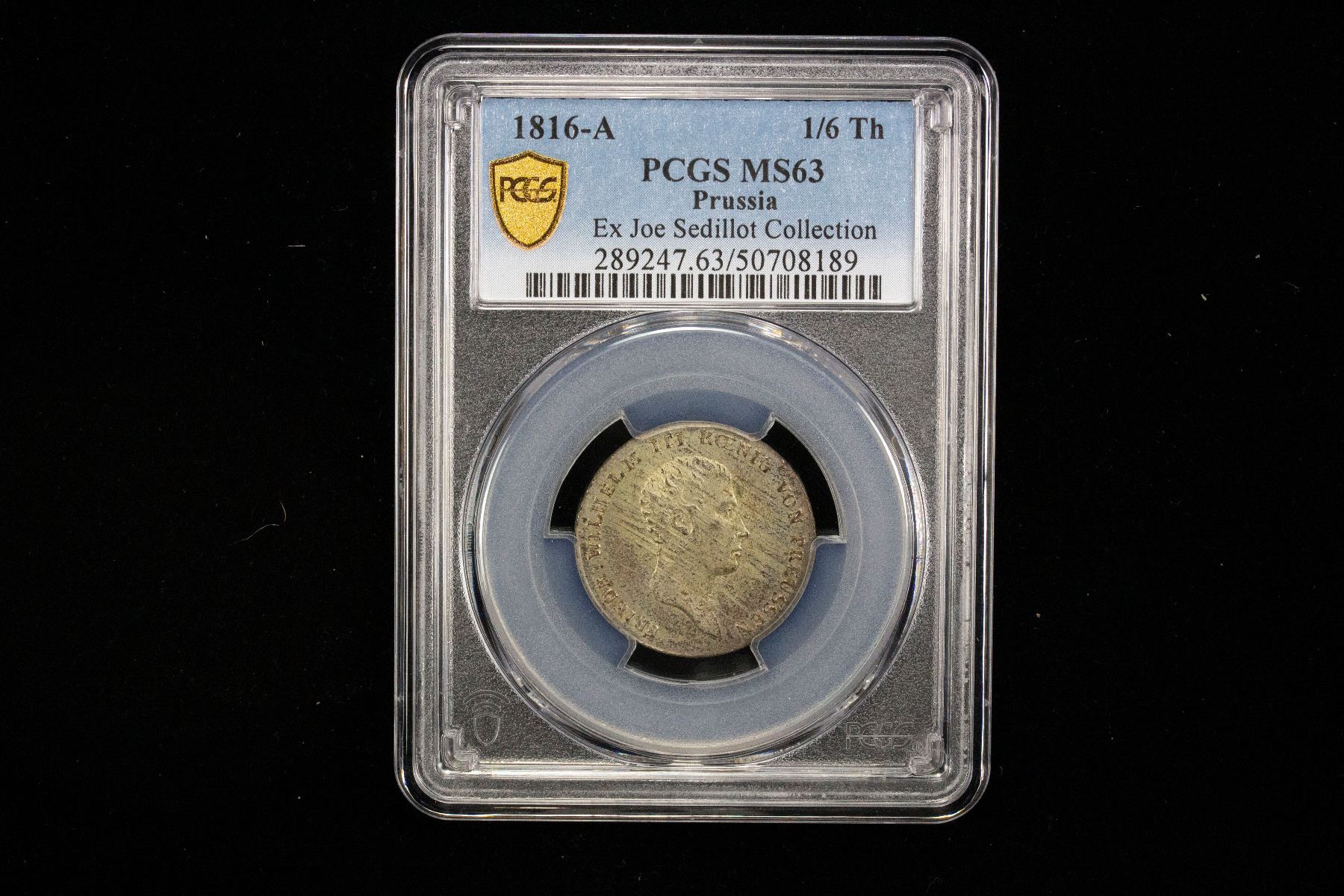 PRUSSIA: Friedrich Wilhelm III, 1797-1840, AR 1/6 thaler, 1816-A, KM-385, Cr-105, a lovely mint state example! PCGS graded MS63, ex Joe Sedillot Collection.