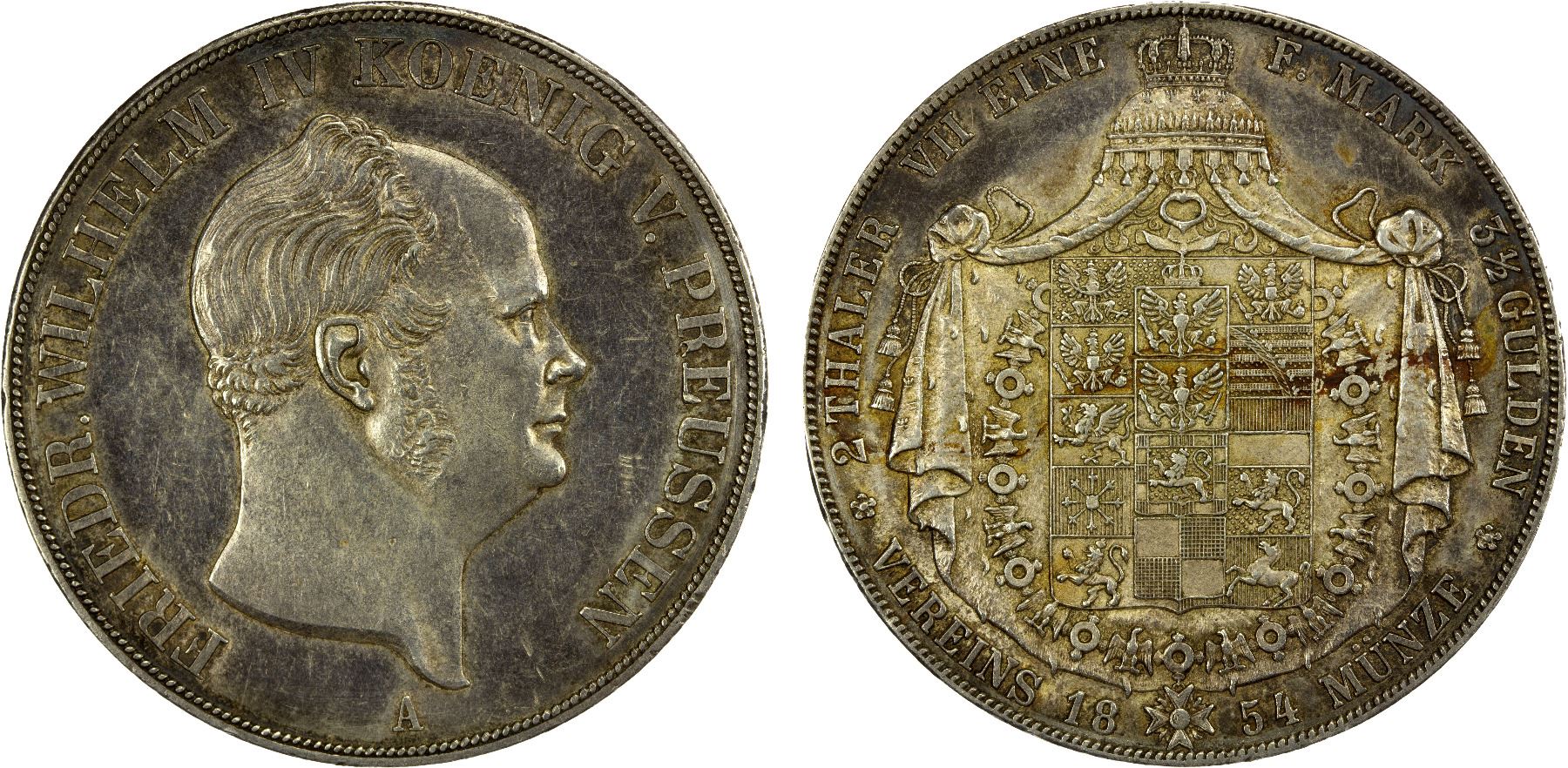 PRUSSIA: Friedrich Wilhelm IV, 1840-1861, AR 2 thaler, 1854-A, AU